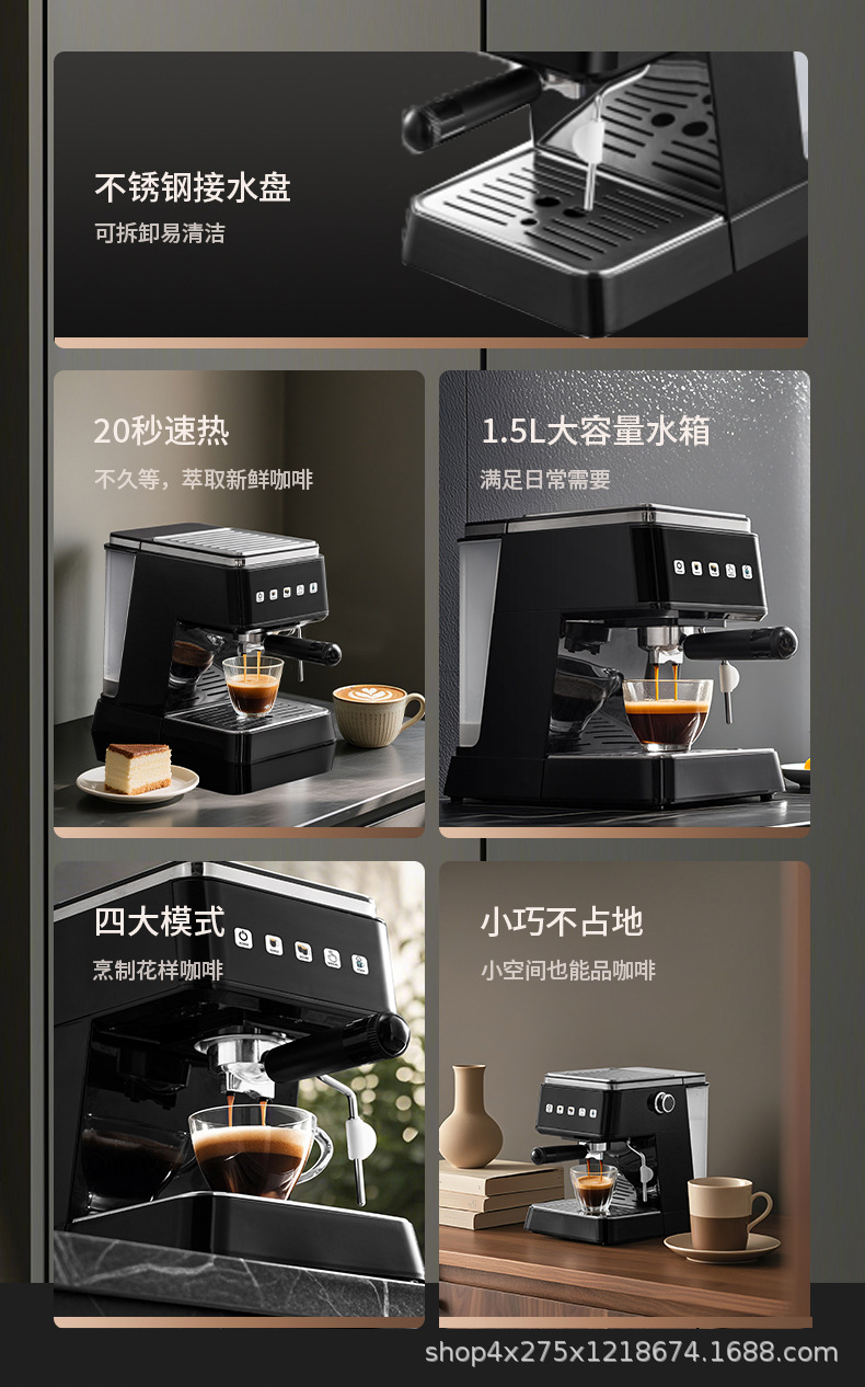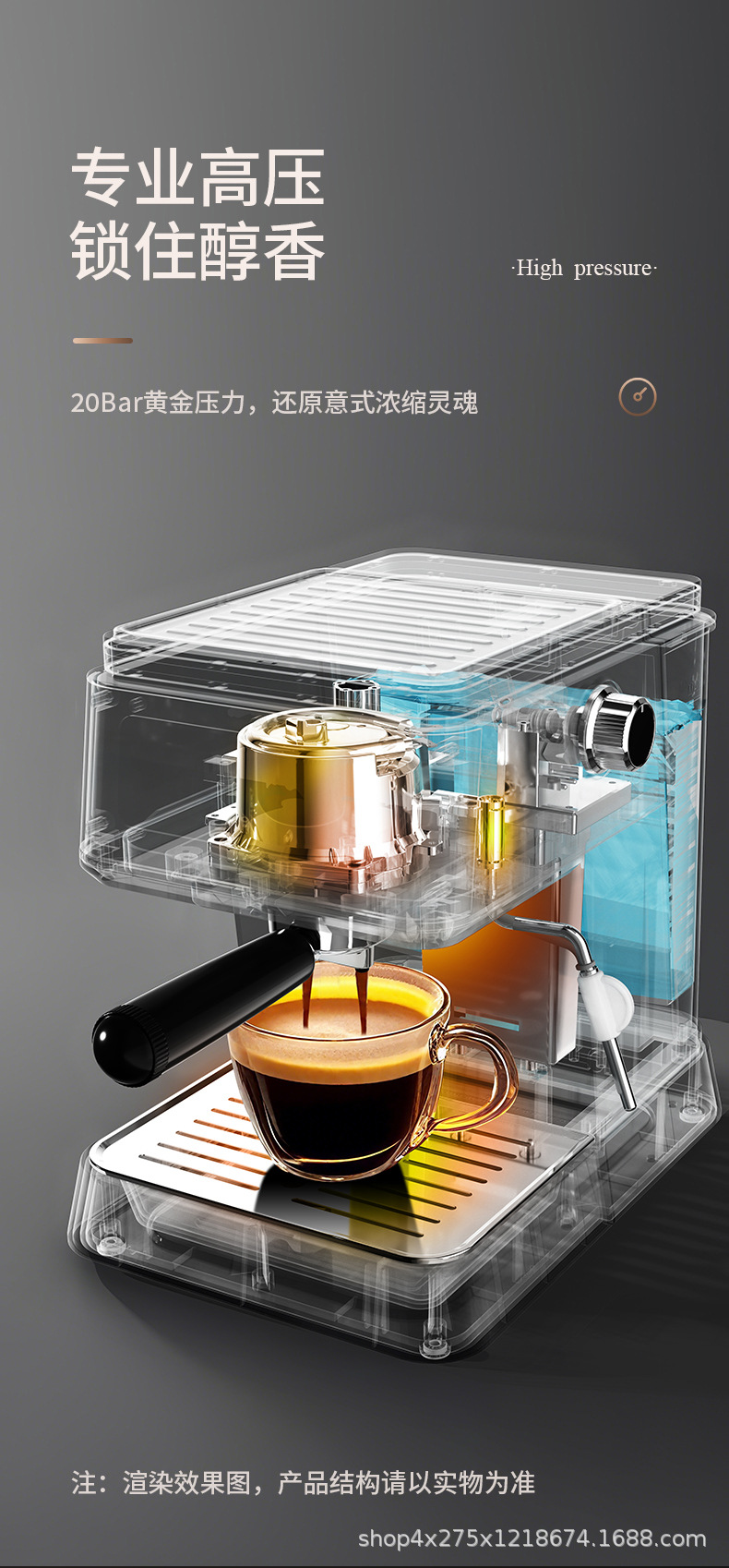 Máquina de café semiautomática italiana transfronteriza, extracción de alta presión, máquina de café integrada de espuma de leche concentrada semiautomática doméstica