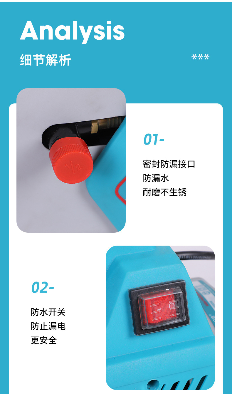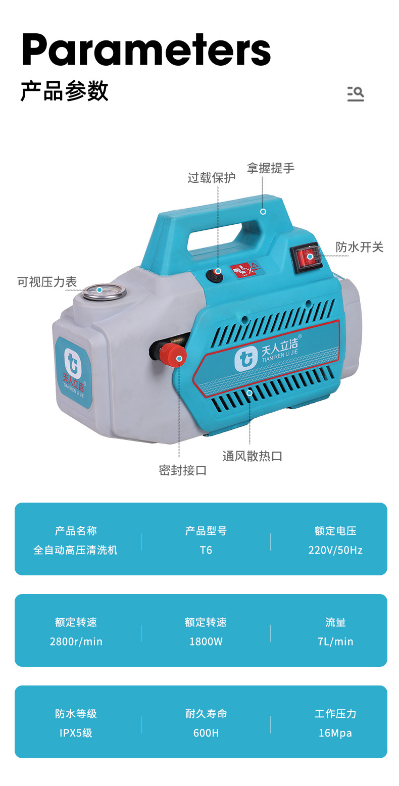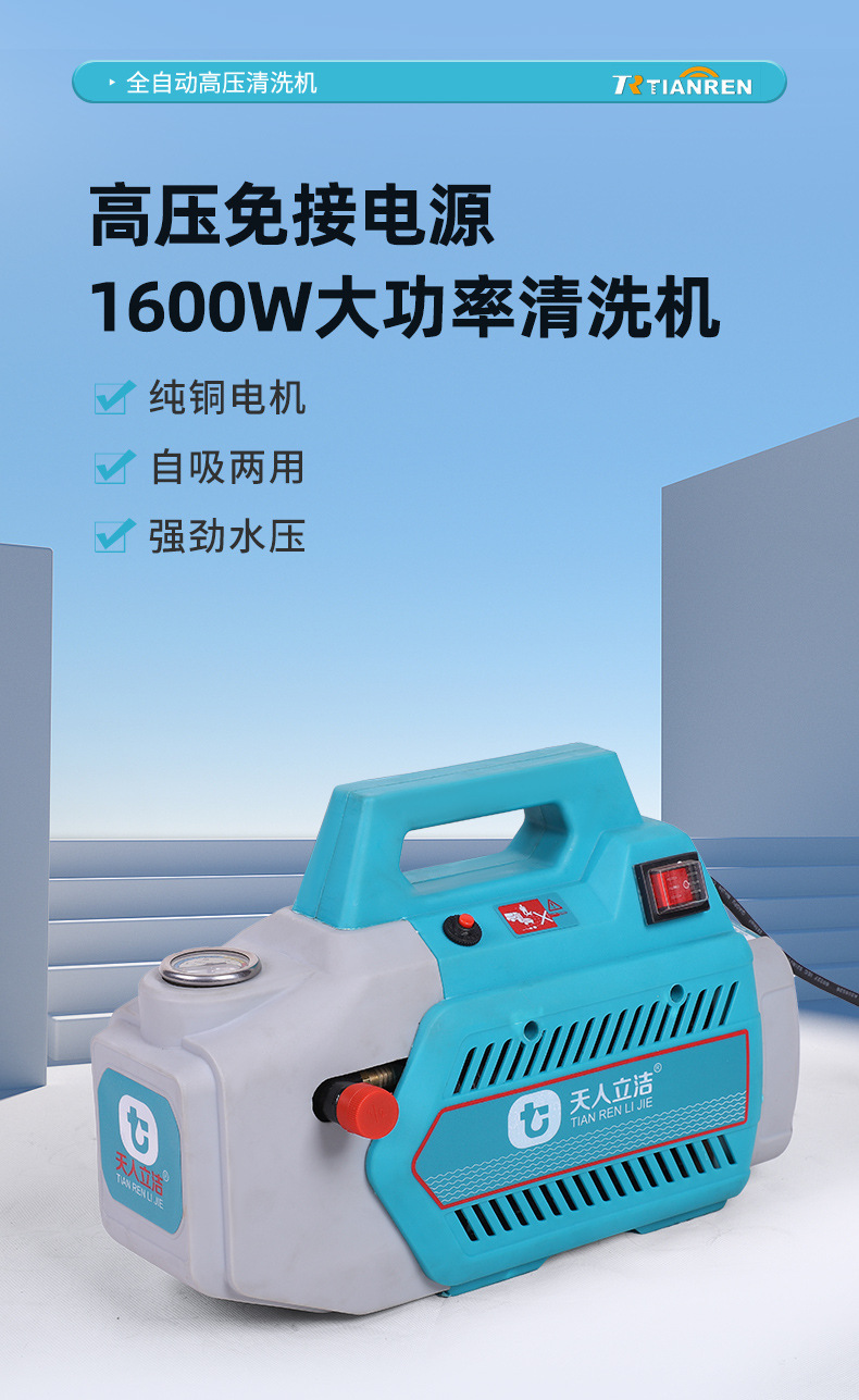 Bomba de agua de alta presión doméstica, pistola de agua de alta potencia, máquina de lavado de automóviles portátil pequeña, cepillo móvil