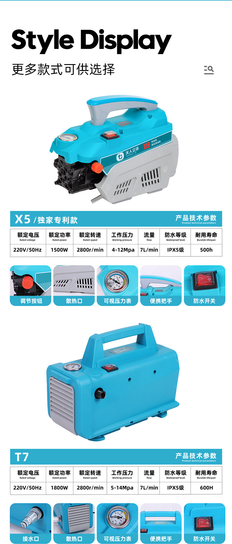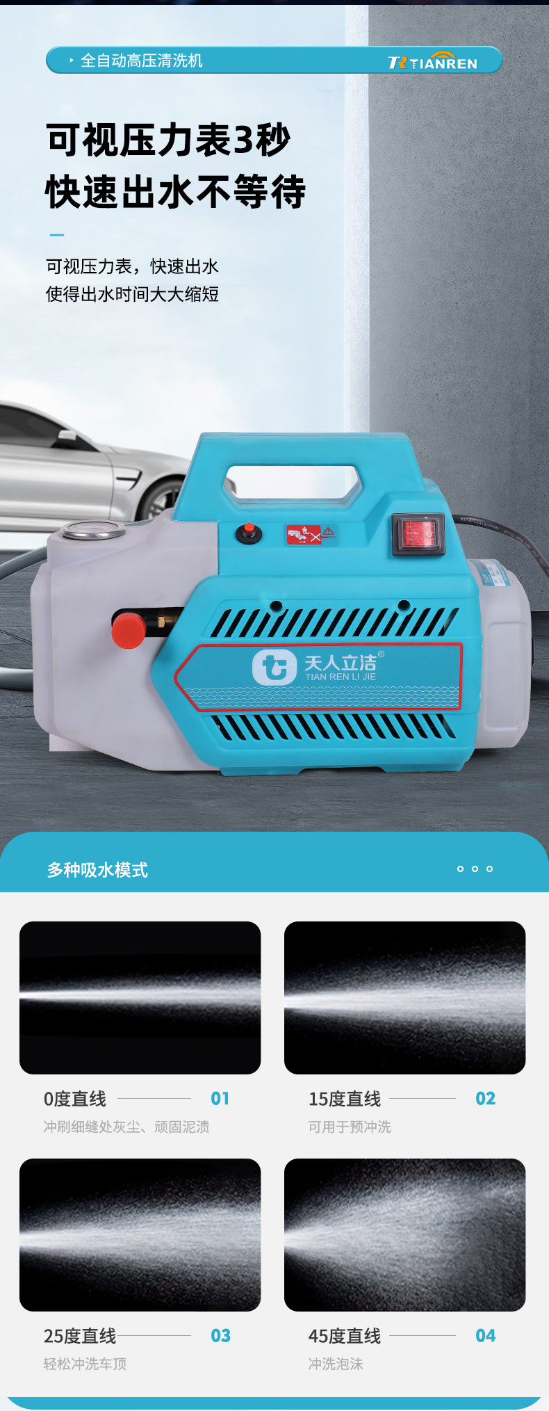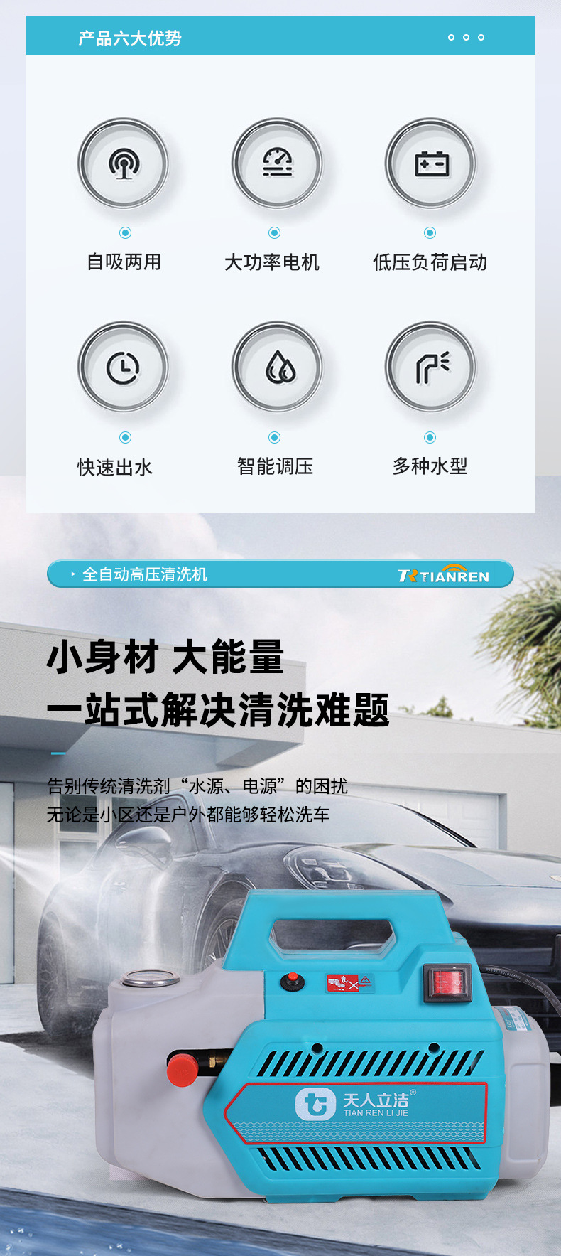 Bomba de agua de alta presión doméstica, pistola de agua de alta potencia, máquina de lavado de automóviles portátil pequeña, cepillo móvil