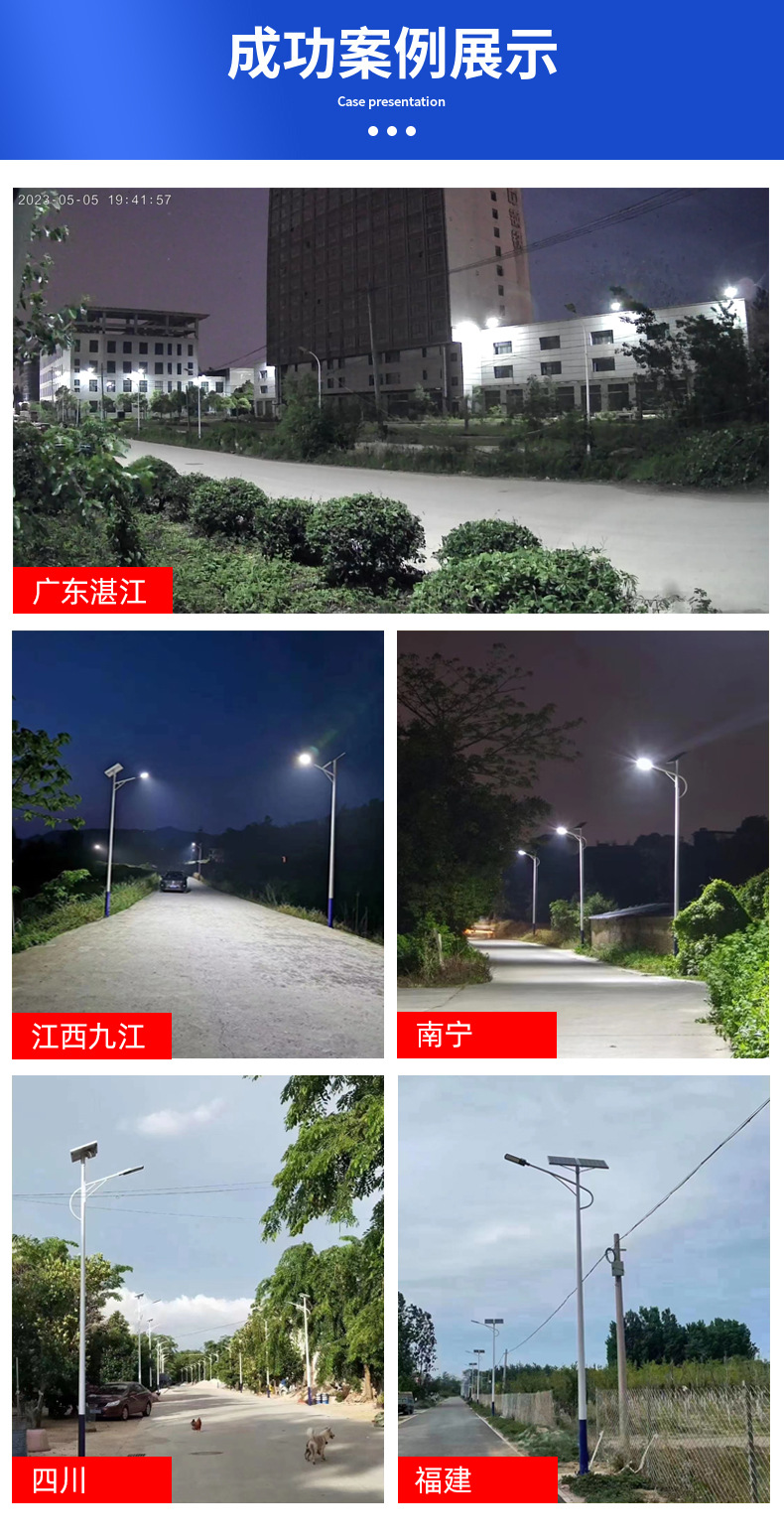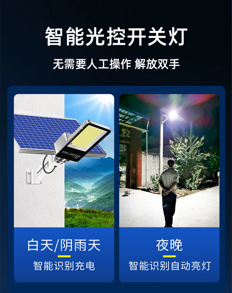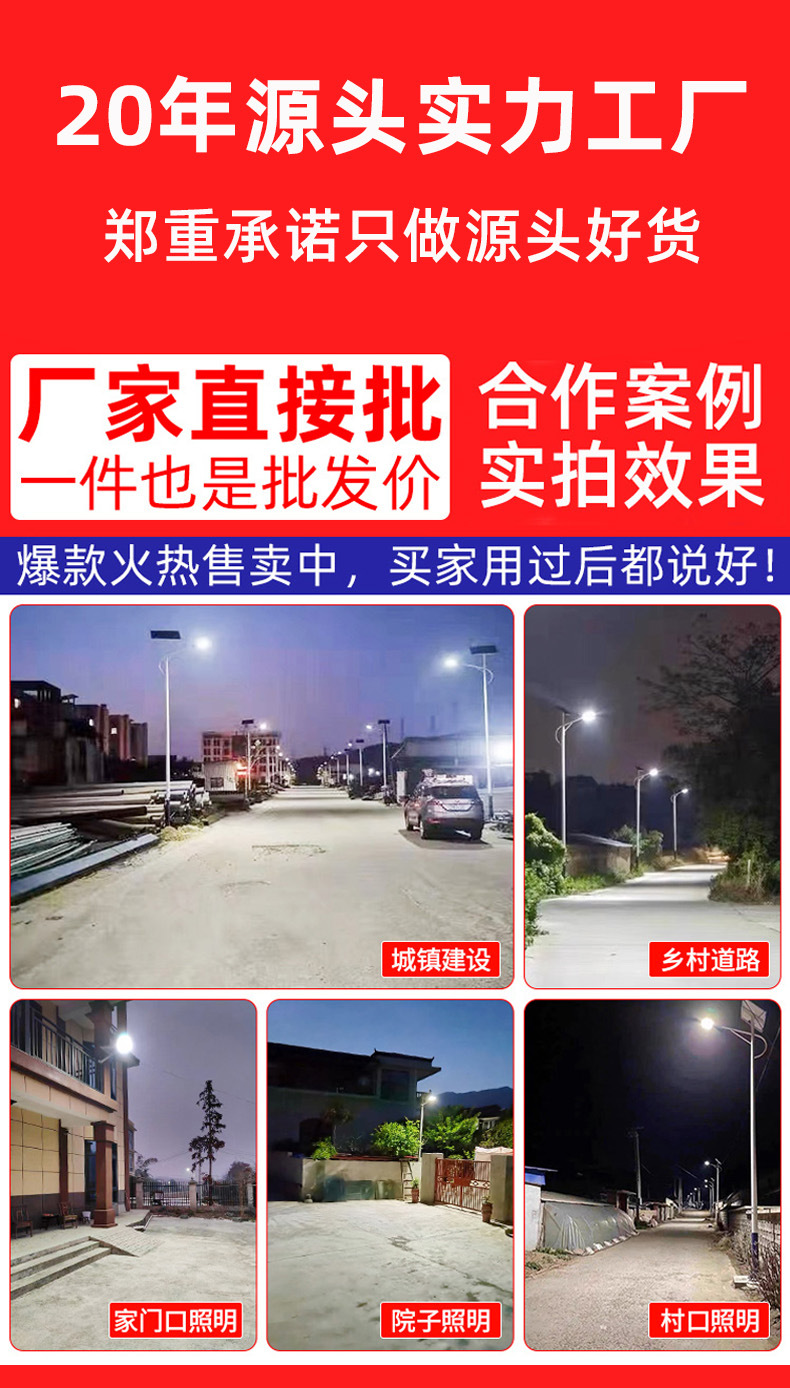 Proyecto de luz solar para jardín al aire libre Solar sensor súper brillante y de alta potencia nueva luz de calle de iluminación de carretera rural