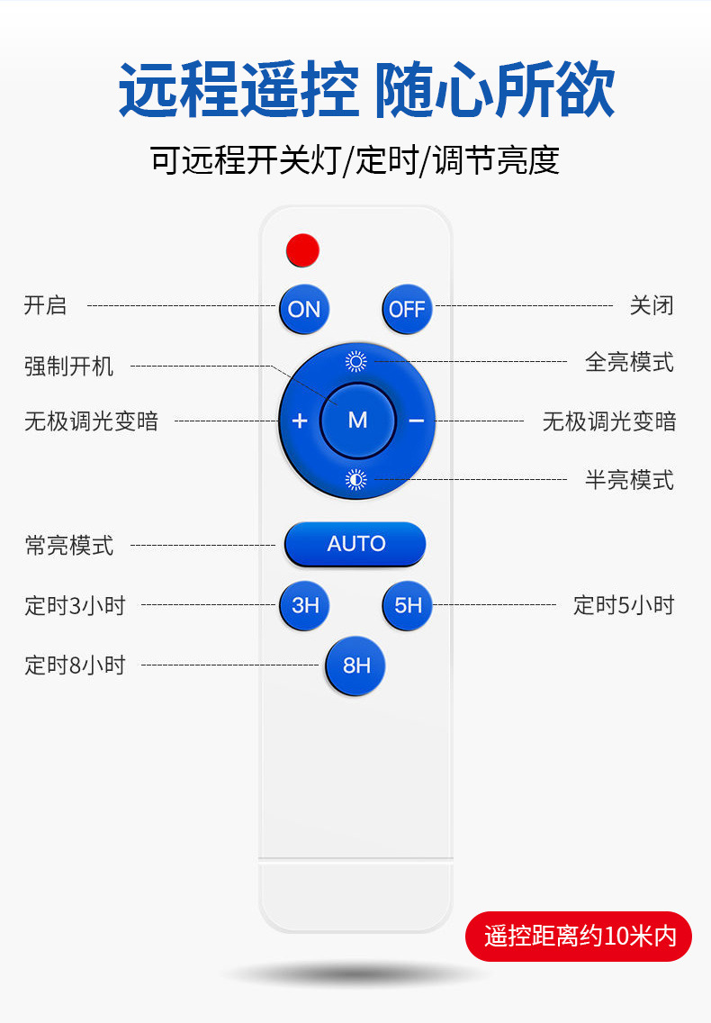 | Dimensiones | El control remoto alto de 80W ilumina 80 metros cuadrados |