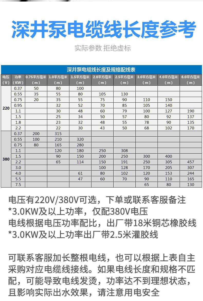 | Especificaciones | 国标0.37kw-最大4方-40米扬程,国标0.55KW-最大4方-54米扬程,国标0.75KW-最大4方-66米扬程,国标0.92KW-最大4方-80米扬程,国标1.1KW-最大4方-90米扬程,国标1.5KW-最大4方-105米扬程,国标1.8KW-最大4方-120米扬程,国标2.0KW-最大4方-140米扬程,国标2.2KW-最大4方-155米扬程,国标3KW-最大4方-168米扬程,国标3.5KW-最大4方-198米扬程,国标4KW-最大4方-280米扬程,国标5.5KW-最大4方-348米扬程,国标7.5KW-最大4方-480米扬程,国标9.2KW-最大4方-580米扬程,国标0.75KW-最大6方-47米扬程,国标1.1KW-最大6方-62米扬程,国标1.5KW-最大6方-85米扬程,国标2KW-最大6方-93米扬程,国标2.2KW-最大6方-125米扬程,国标3KW-最大6方-135米扬程,国标4KW-最大6方-235米扬程,国标5.5KW-最大6方-270米扬程,国标7.5KW-最大6方-340米扬程,国标9.2KW-最大6方-430米扬程,国标0.55KW-最大8方-30米扬程,国标0.75KW-最大8方-40米扬程,国标1.1KW--最大8方-60米扬程,国标1.5KW-最大8方-82米扬程,国标2.2KW-最大8方-91米扬程,国标3KW-最大8方-115米扬程,国标4Kw-最大8方-162米扬程,国标5.5KW-最大8方-196米扬程,国标7.5KW-最大8方-240米扬程,国标9.2KW-最大8方-285米扬程,国标0.75KW-最大10方-28米扬程,国标1.1KW-最大10方-34米扬程,国标1.5KW-最大10方-45米扬程,国标2.2KW-最大10方-60米扬程,国标3.0KW-最大10方-75米扬程,国标4KW-最大10方-106米扬程,国标5.5KW--最大10方-126米扬程,国标7.5KW--最大10方-160米扬程,国标9.2KW-最大10方-195米扬程,国标3KW-最大16方-60米扬程,国标4KW-最大16方-70米扬程,国标5.5KW-最大16方-101米扬程,国标7.5KW-最大16方-131米扬程,国标9.2KW-最大16方-157米扬程 |