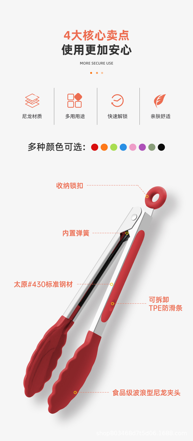 Pinzas para Alimentos de Acero Inoxidable 430, Resistentes a Altas Temperaturas, Pinzas para Barbacoa Anti-quemaduras para Exteriores, Utensilios de Cocina, Venta Caliente Transfronteriza de Barbacoa