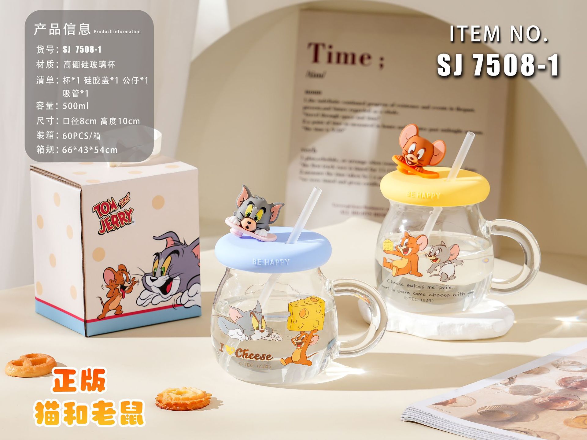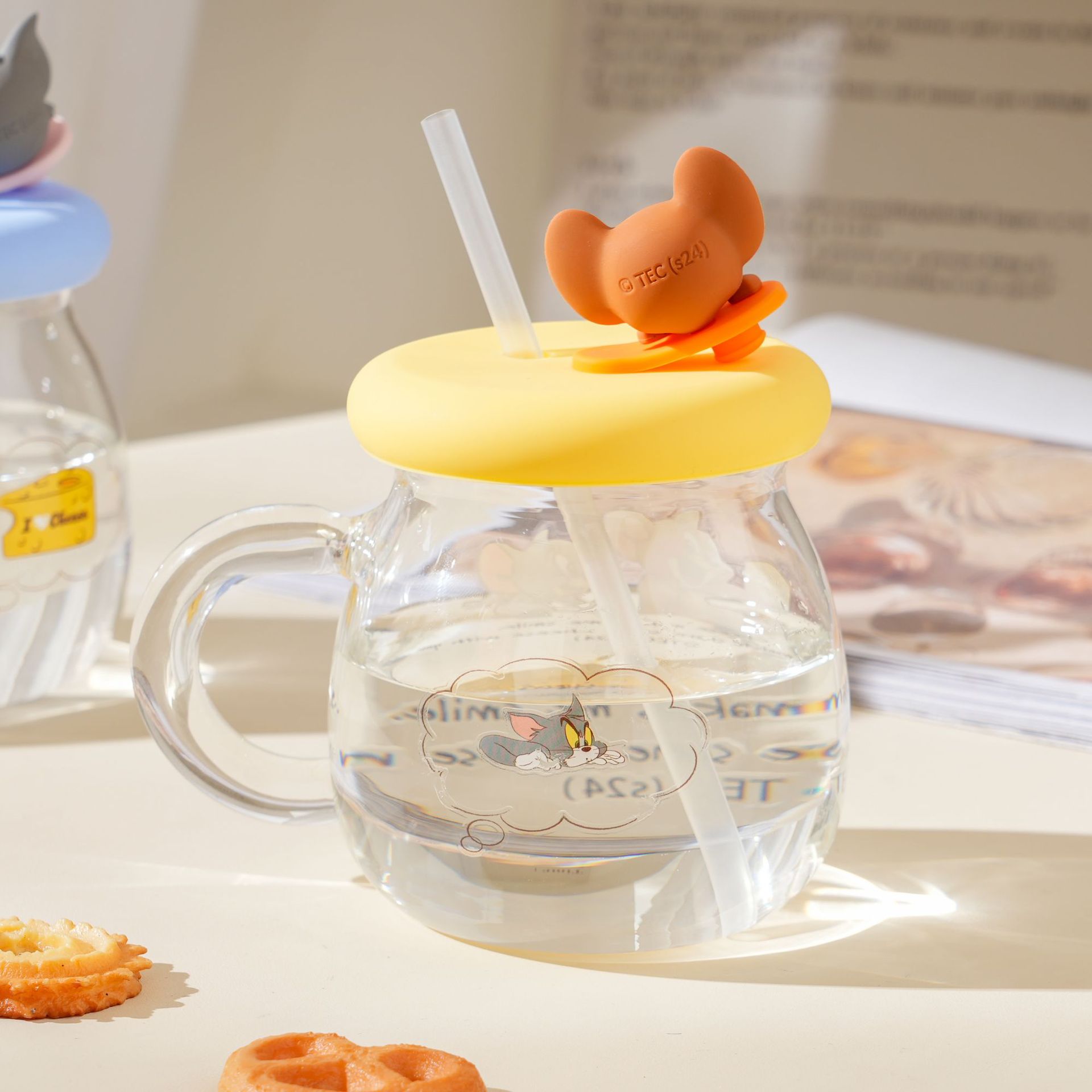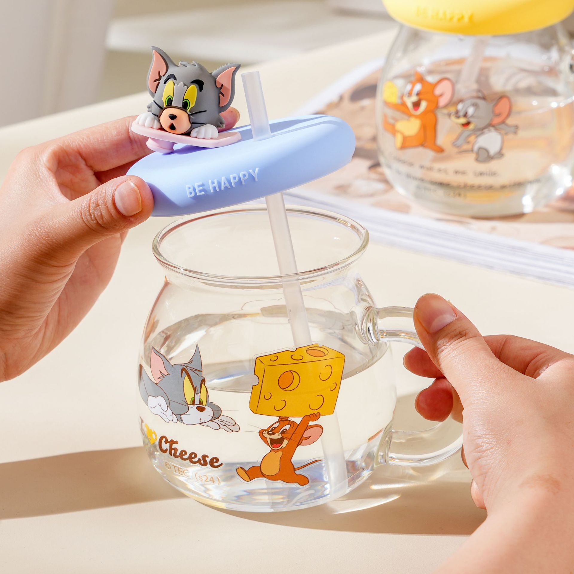 Gatos y ratones autorizados copas de vidrio con patrón de dibujos animados Jerry copas de agua regalos para el hogar con tapa Tom mug