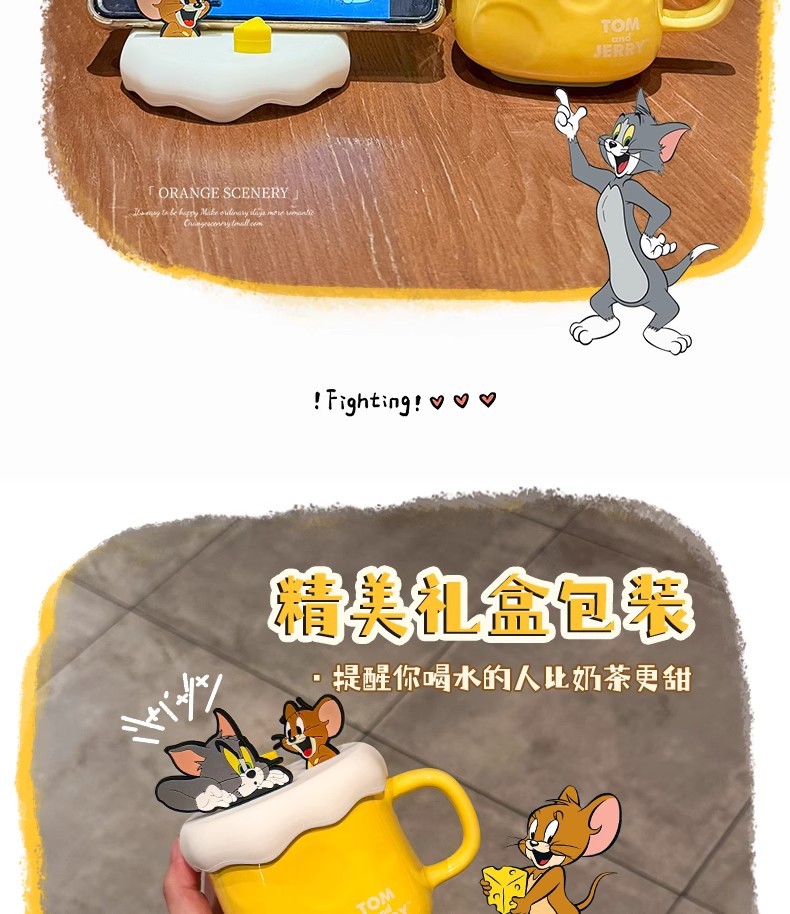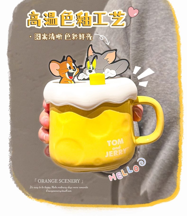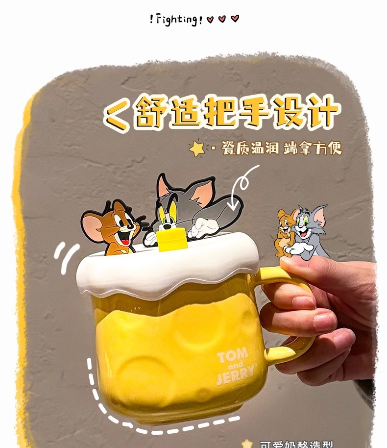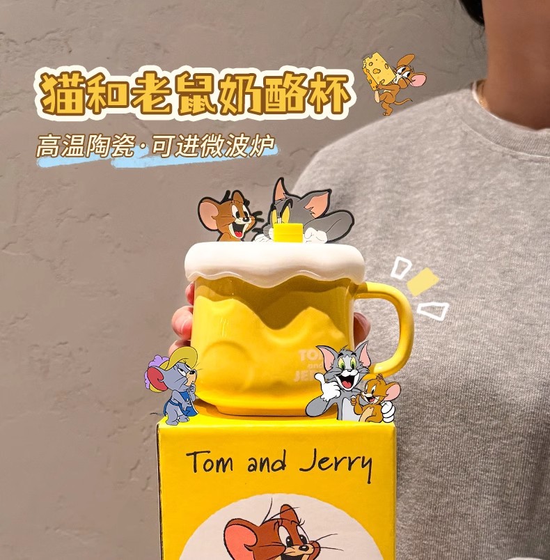 Taza de gato y ratón Taza de gran capacidad para el hogar Taza de cerámica de alto valor Taza de agua de dibujos animados lindo Regalo de cumpleaños