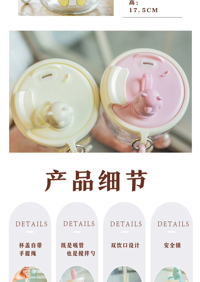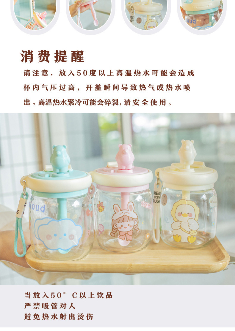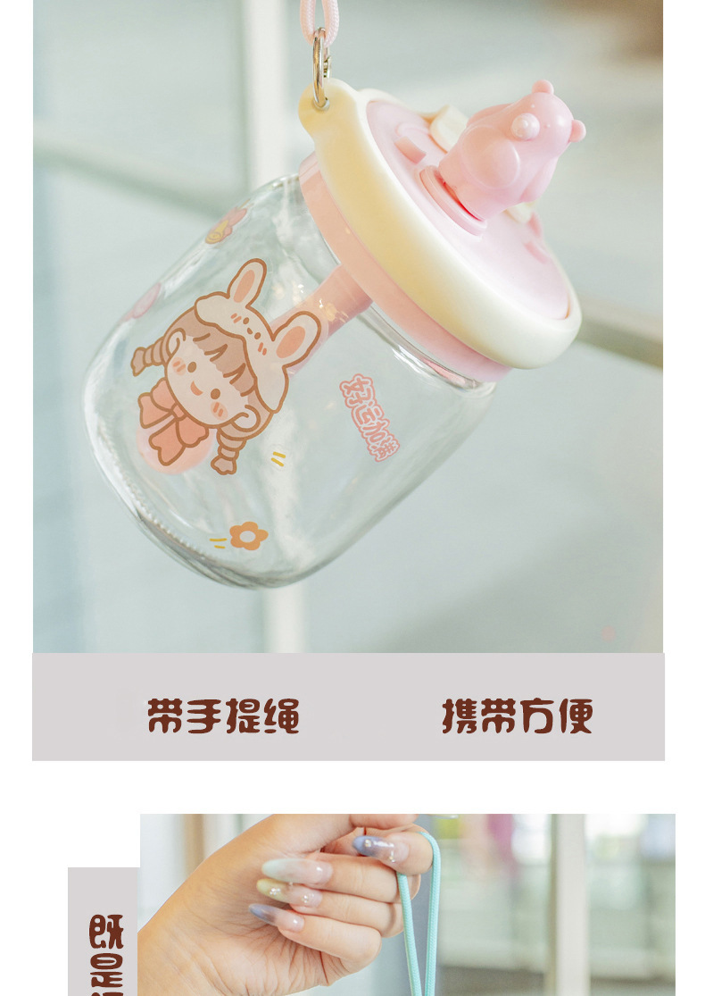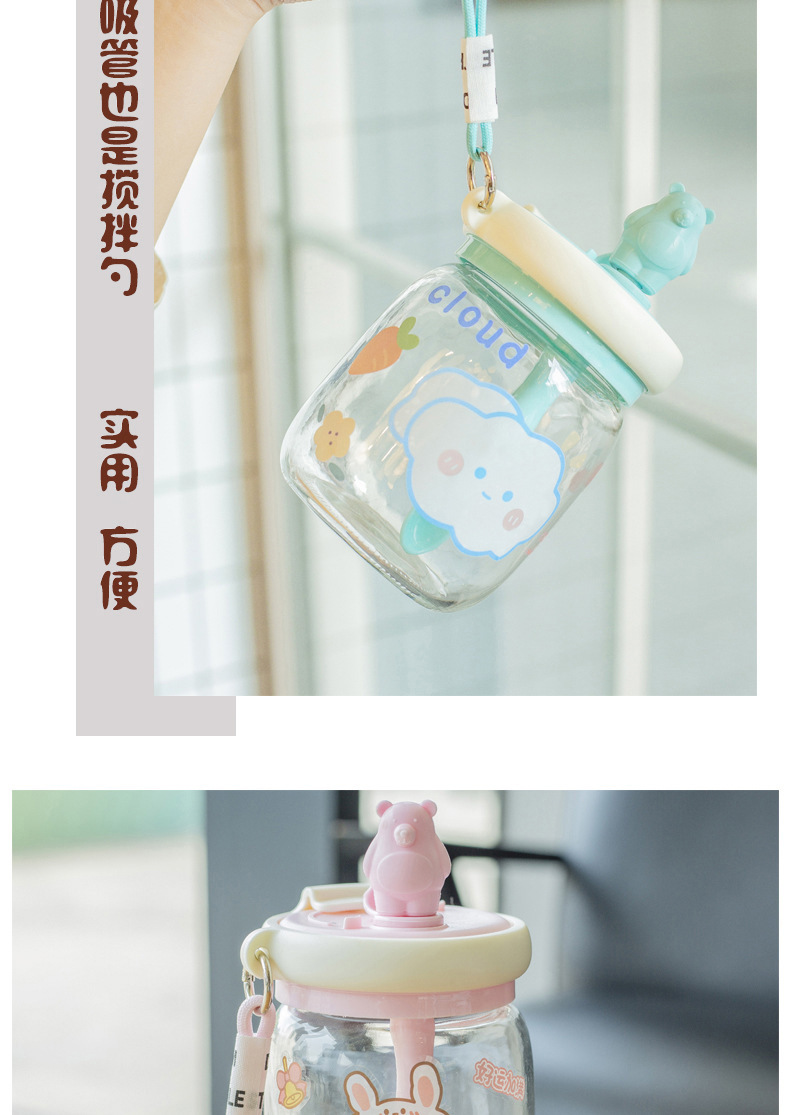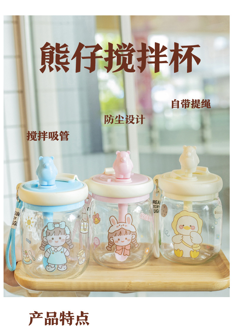 Taza de agua creativa para niños de dibujos animados taza de paja de gran capacidad de mano taza de vidrio portátil taza de oso lindo