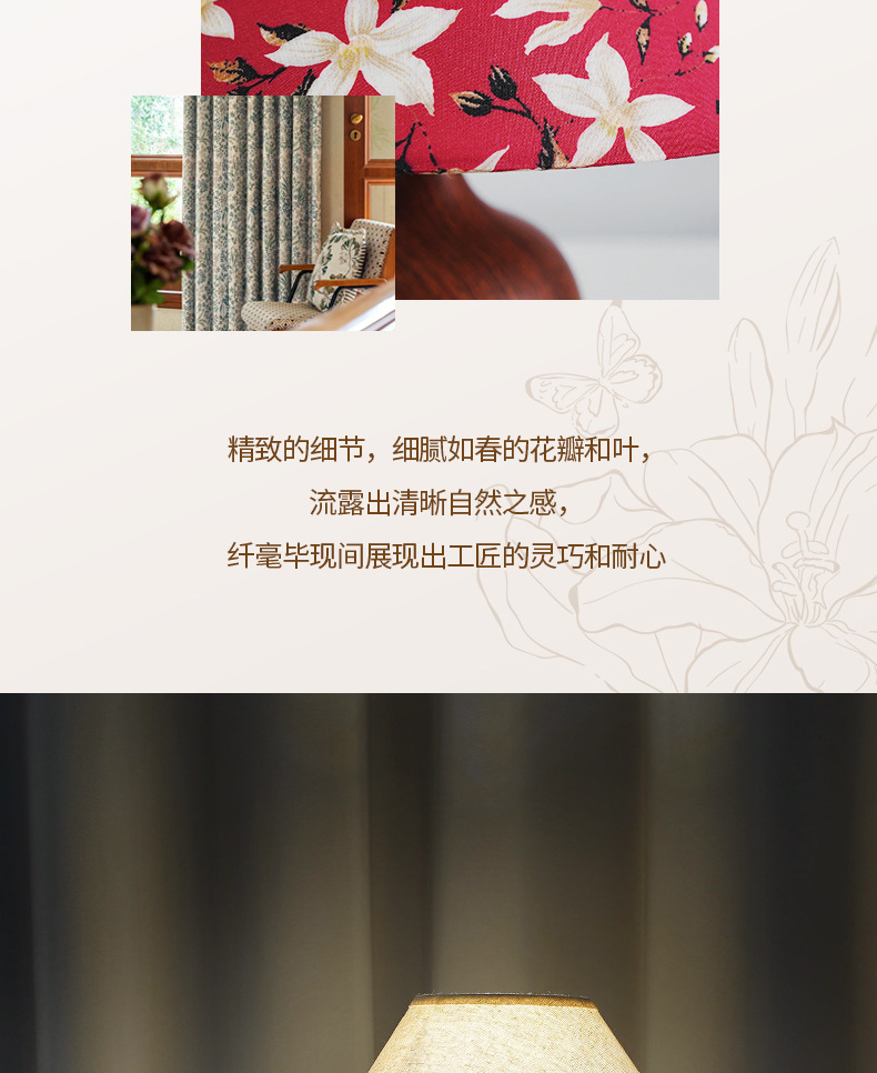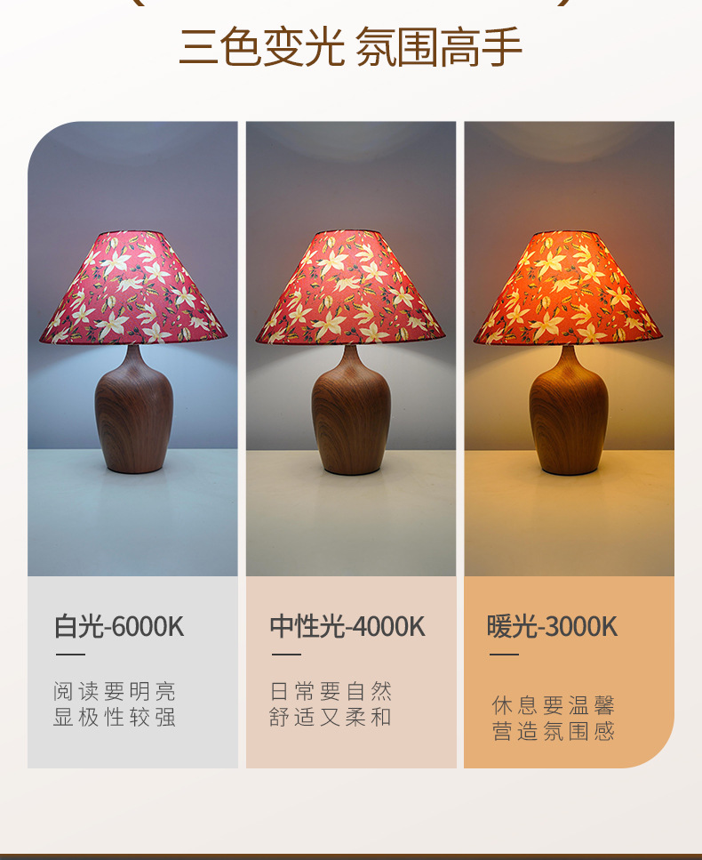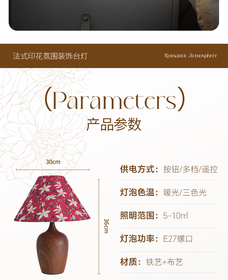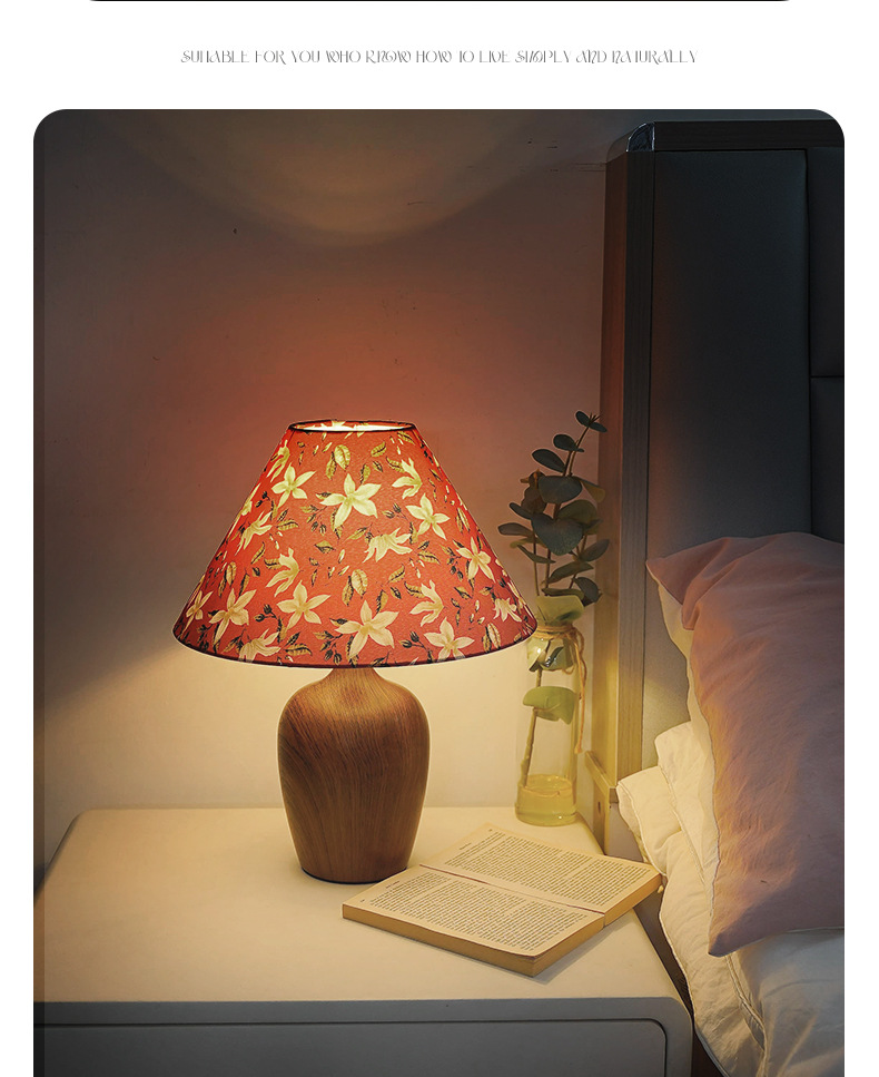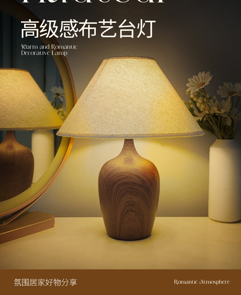 Lámpara de mesa de cabecera de dormitorio con impresión retro, lujo ligero, sensación de alta gama, decoración de lámpara de mesa nórdica, ambiente de estudio, luz de noche, habitación