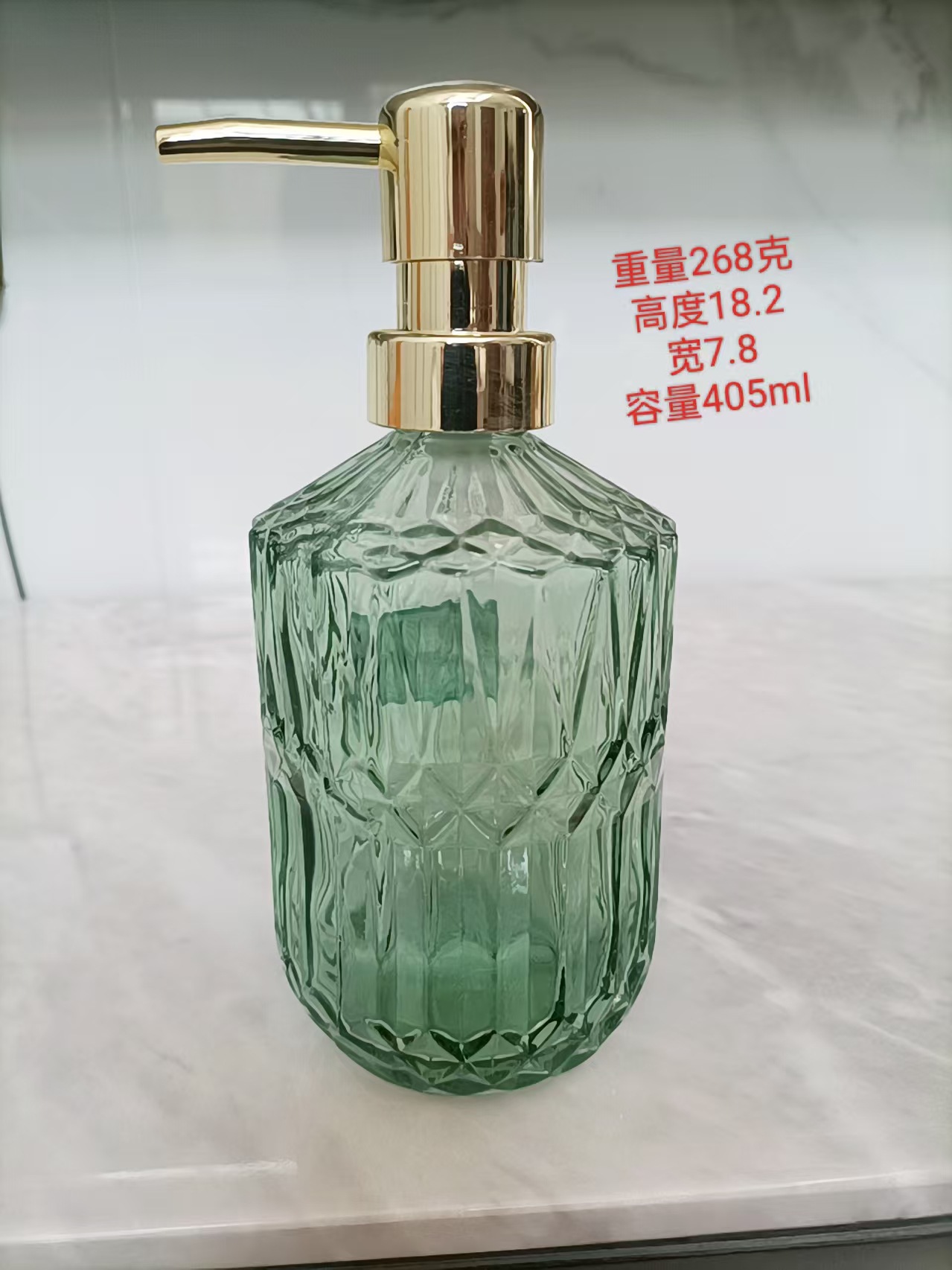 Amazon 400ml botella de champú de vidrio transparente diamante desinfectante de manos botella de jabón líquido de baño botella de vidrio