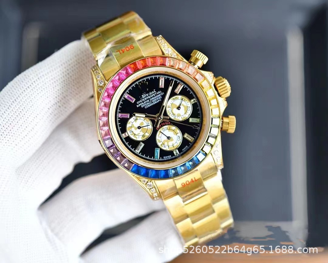 Comercio exterior transfronterizo, mano de obra, tres ojos y seis agujas, maquinaria multifuncional, Dituna Rainbow Di Steel Belt, reloj de registro para hombre, microempresa