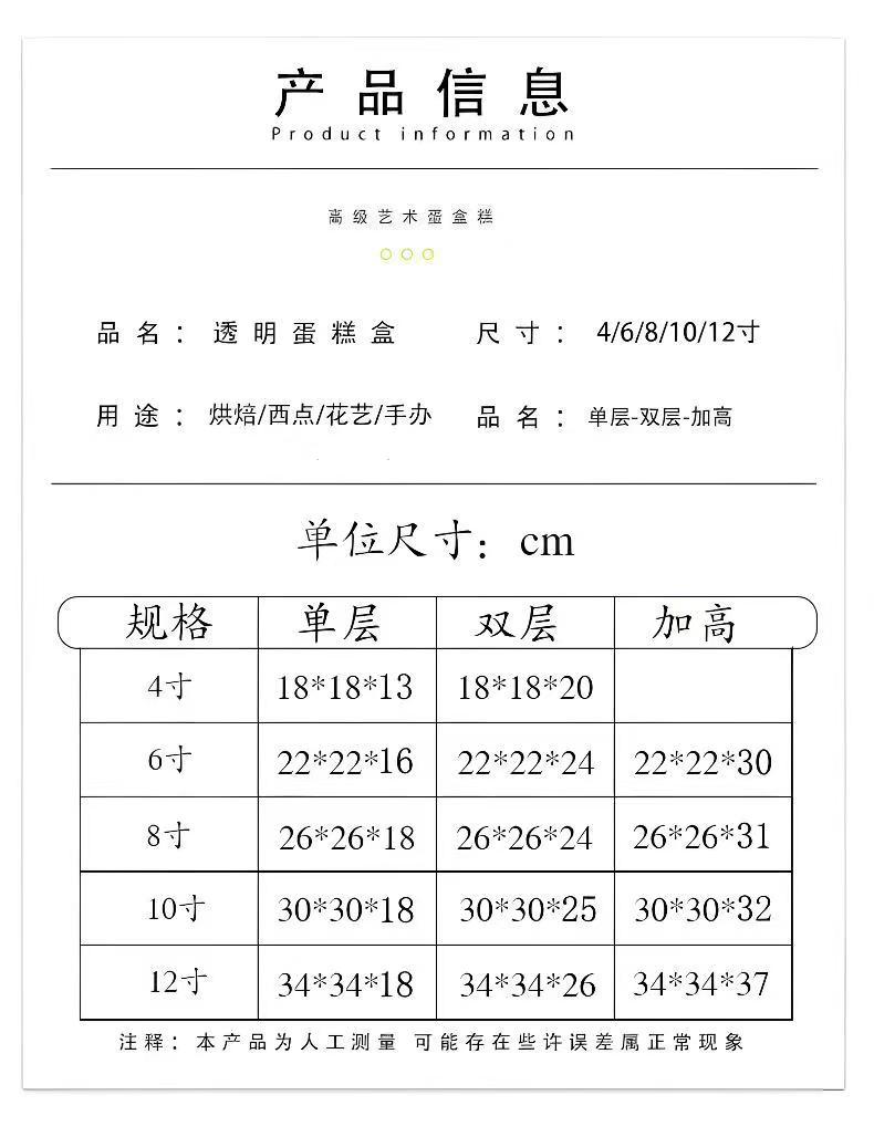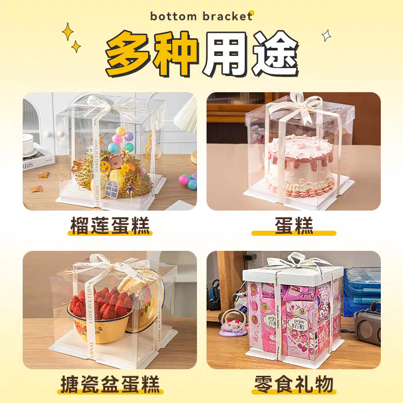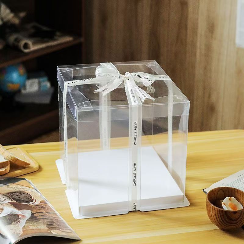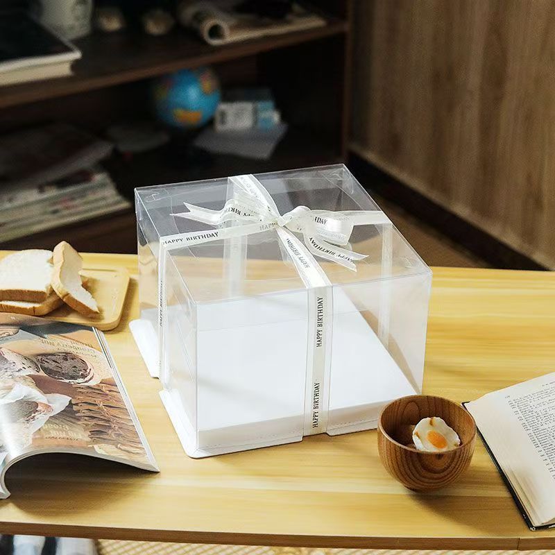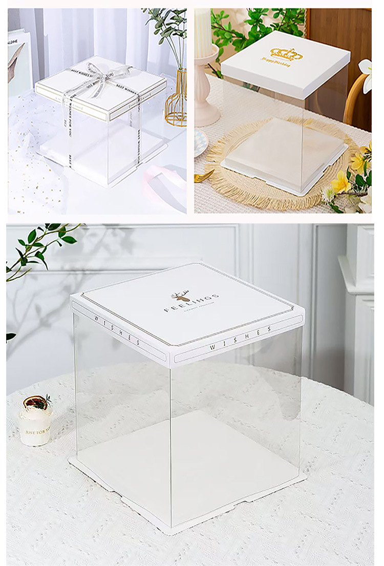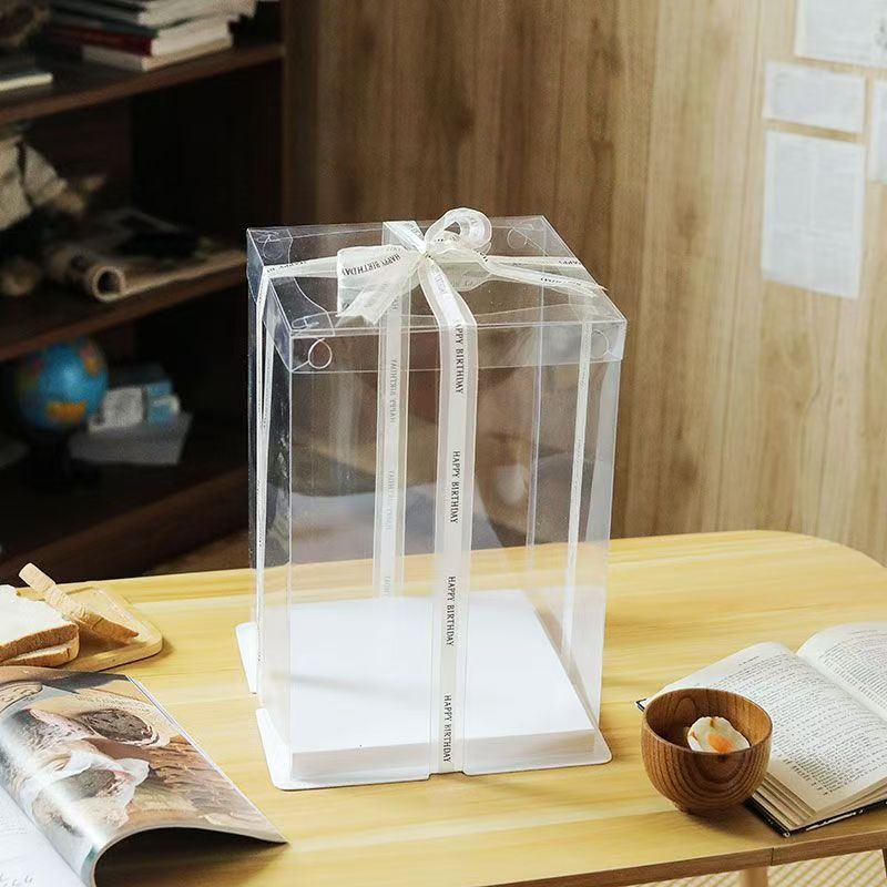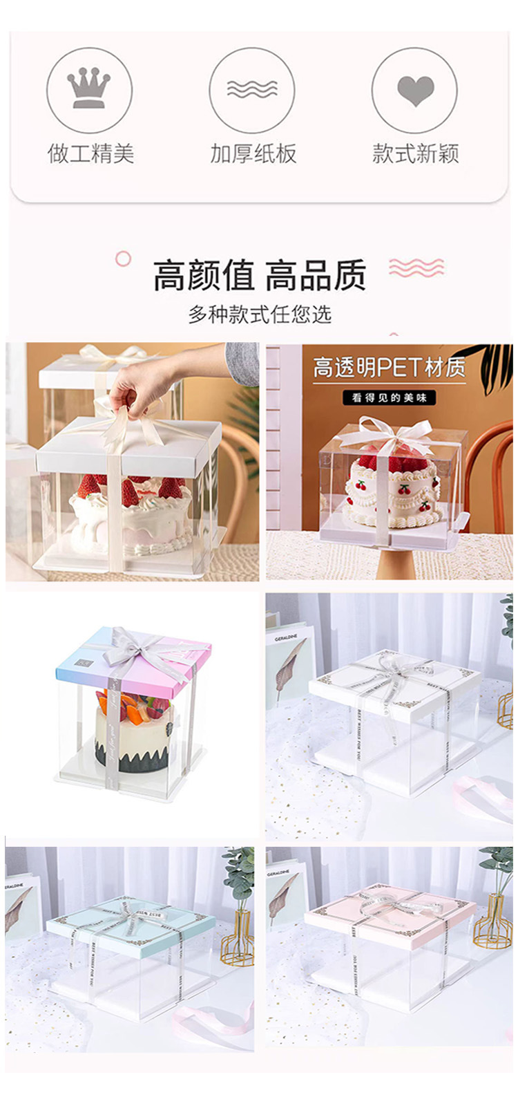Caja de pastel transparente de 4 pulgadas 6 pulgadas 8 pulgadas 10 pulgadas 12 pulgadas caja de embalaje de pastel de doble capa de cumpleaños