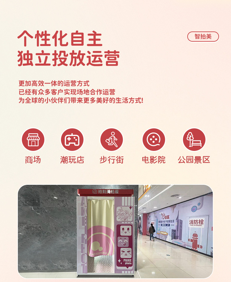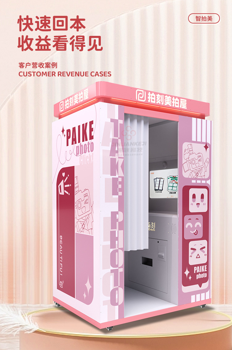 Cabina de fotos de autoservicio con escáner integrado para tomar retratos en lugares turísticos, uso comercial en centros comerciales, fabricante de cabinas de fotos inteligentes