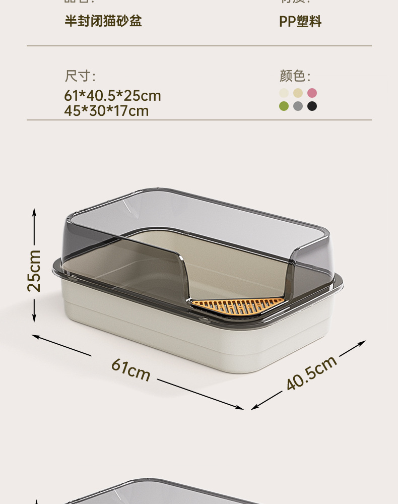 Lavabo de arena para gatos de gran tamaño, caja de arena para gatos semicerrada, gran caja de arena para gatos abierta, suministros para mascotas de gran tamaño