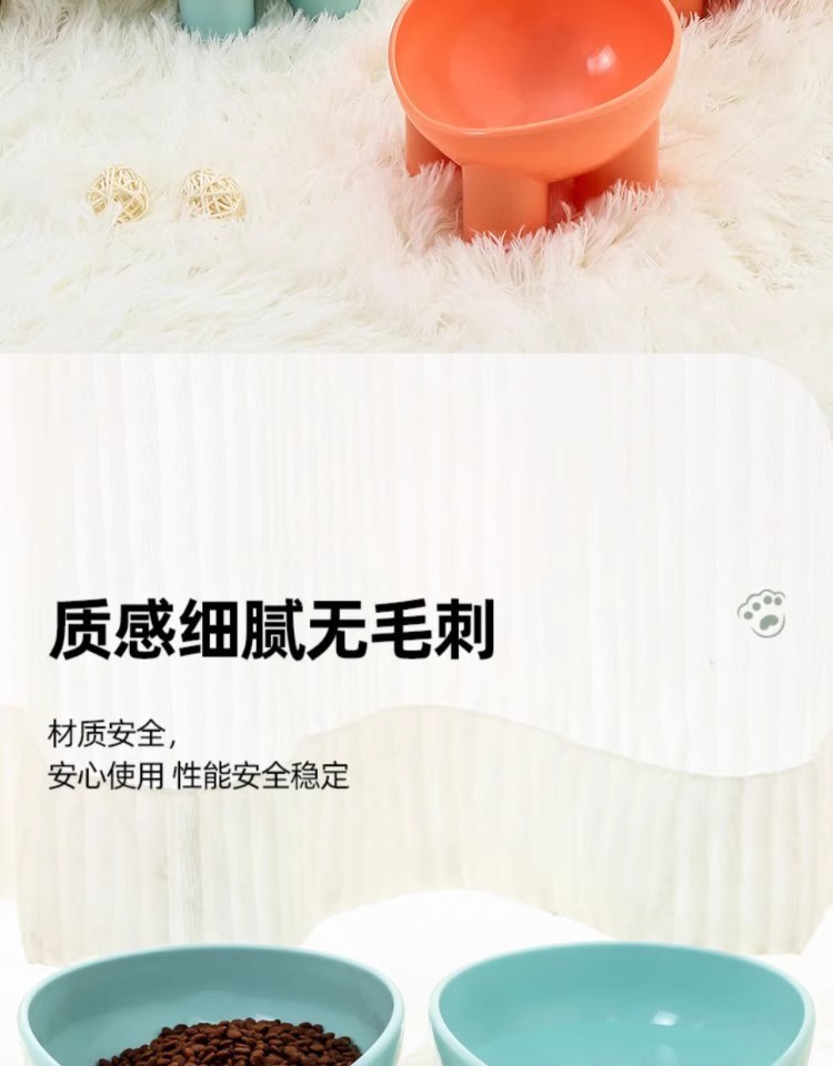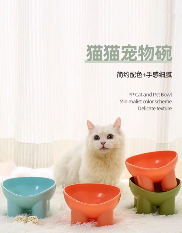 Suministros para mascotas color macaron cuello biselado anti-volcado patas de elefante de plástico patas altas tazón para gatos tazón para mascotas al por mayor