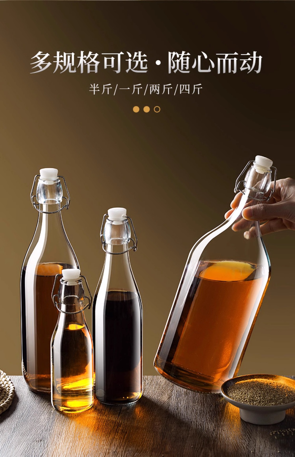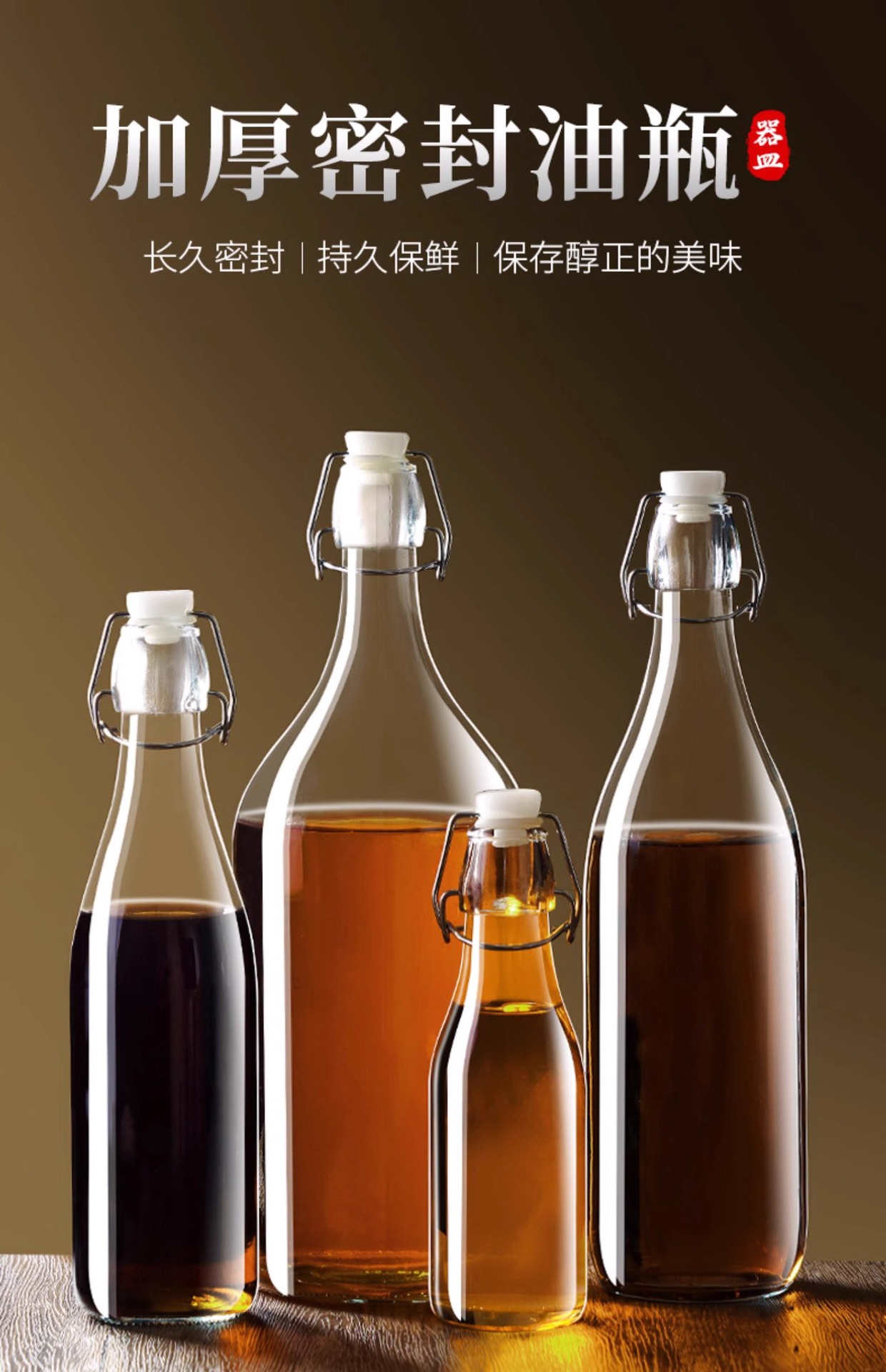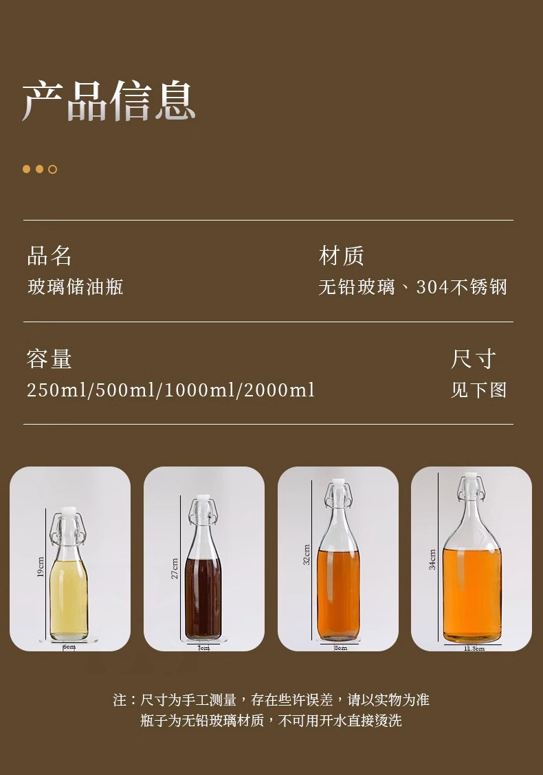 Botella sellada de vidrio de grado alimenticio, hebilla, tapa, aceite de sésamo, botella vacía, olla de aceite de cocina de gran capacidad, botella de bebida condimentada