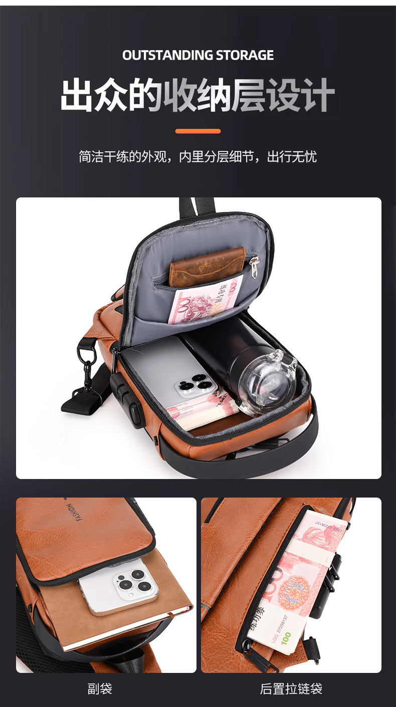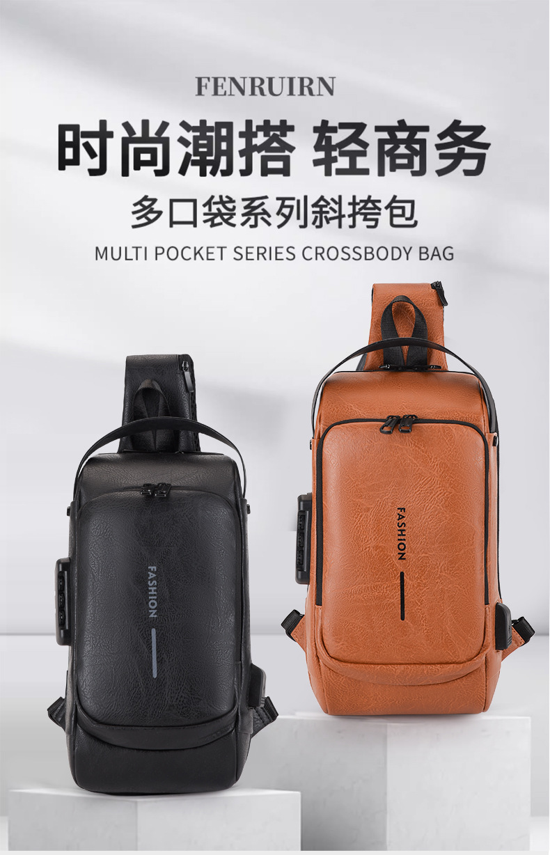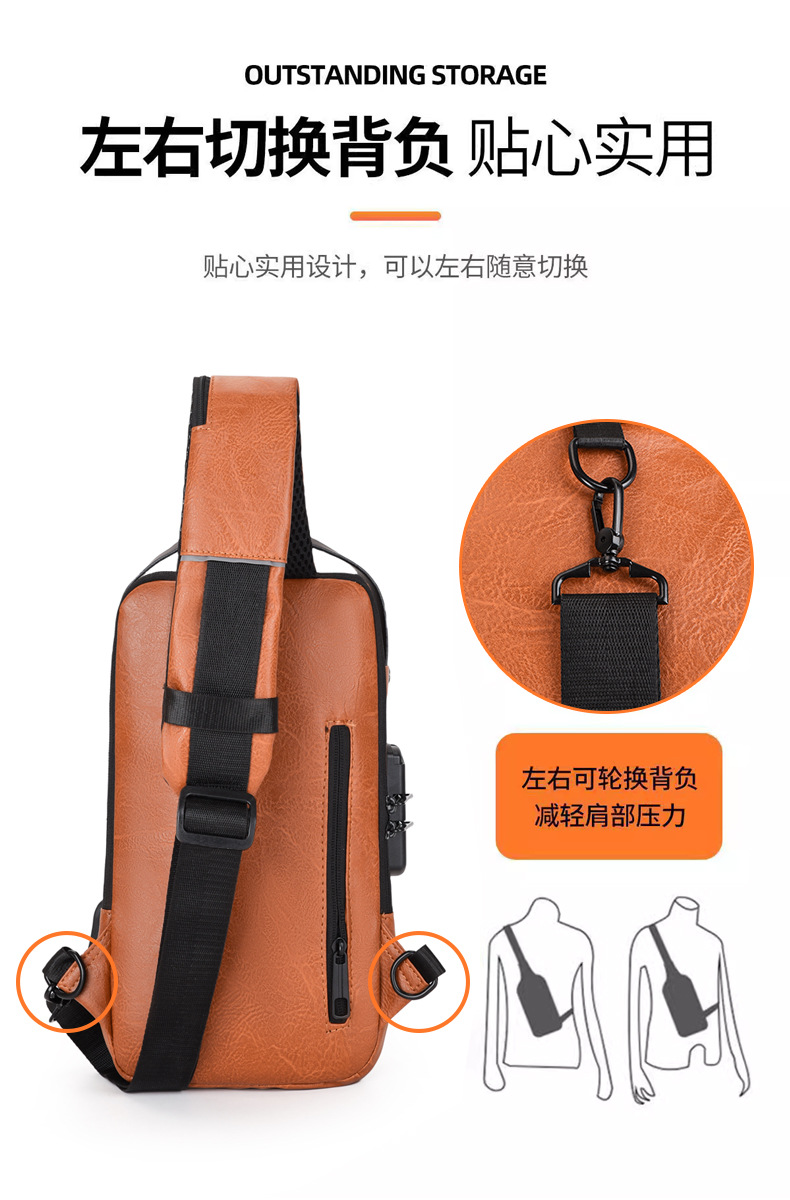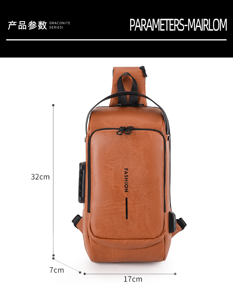 Bolso de pecho para hombre multifuncional con contraseña, espalda antirrobo, deporte de un solo hombro, mensajero impermeable, bolsa de locomotora de gran capacidad para automóvil deportivo genial