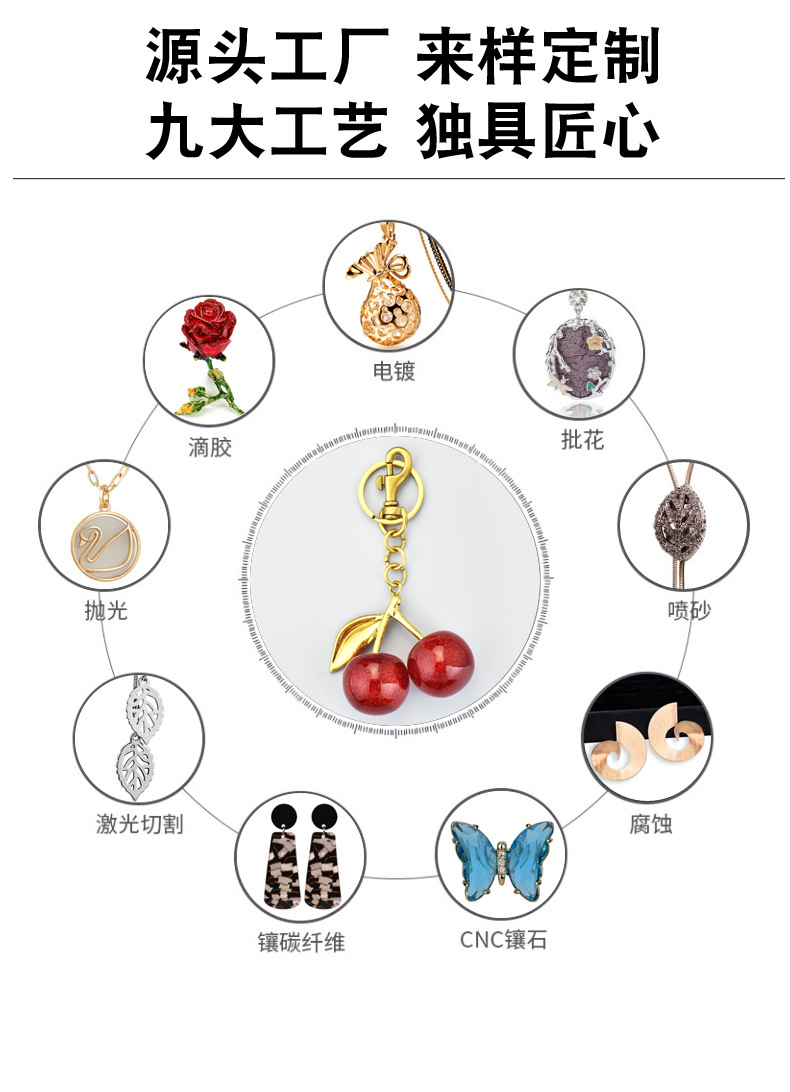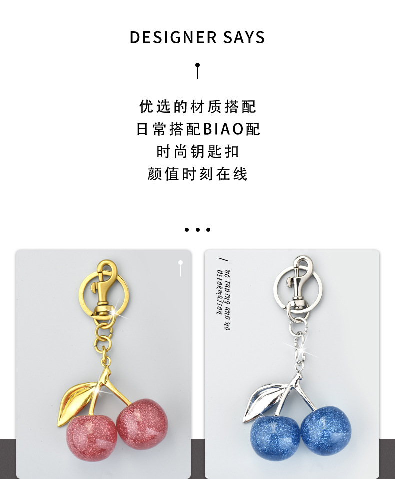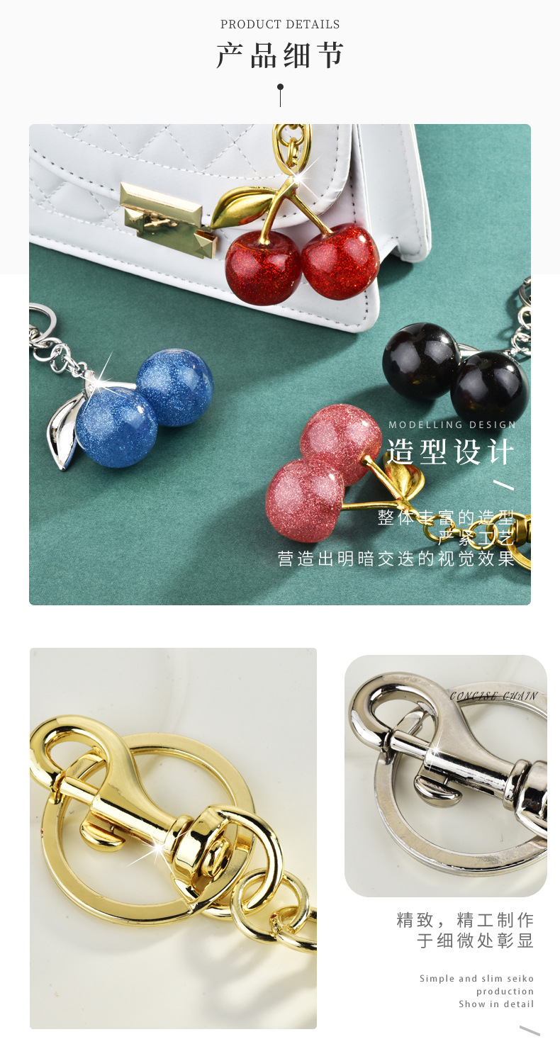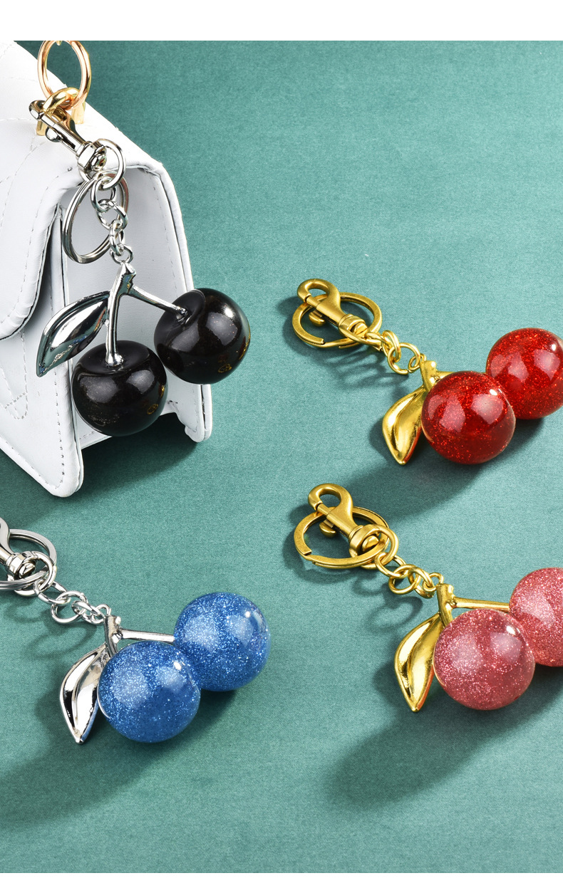 Fábrica directa de cereza bolsos colgantes de cerradura flash cereza decoración de moda multicolor coche colgantes de llaver