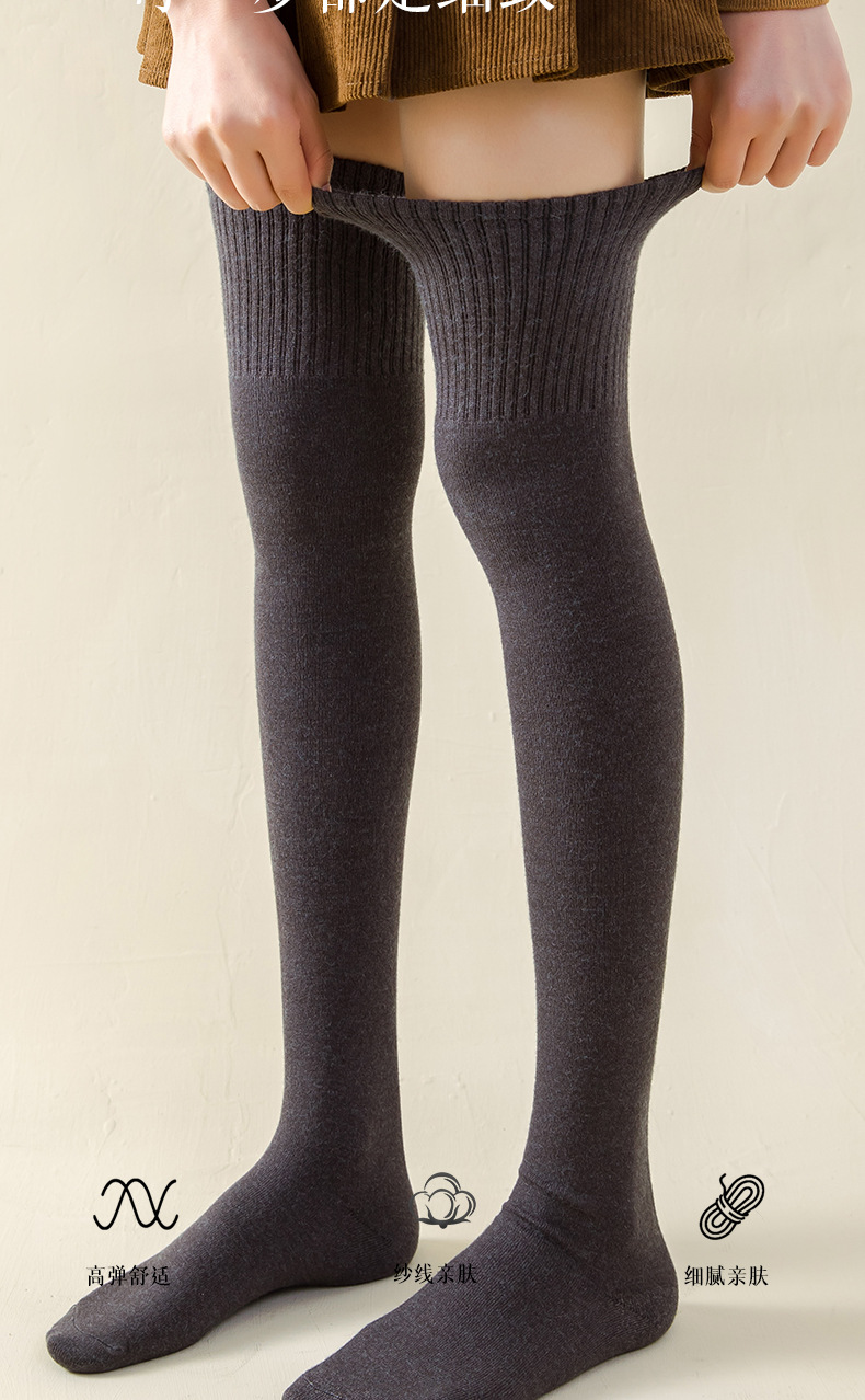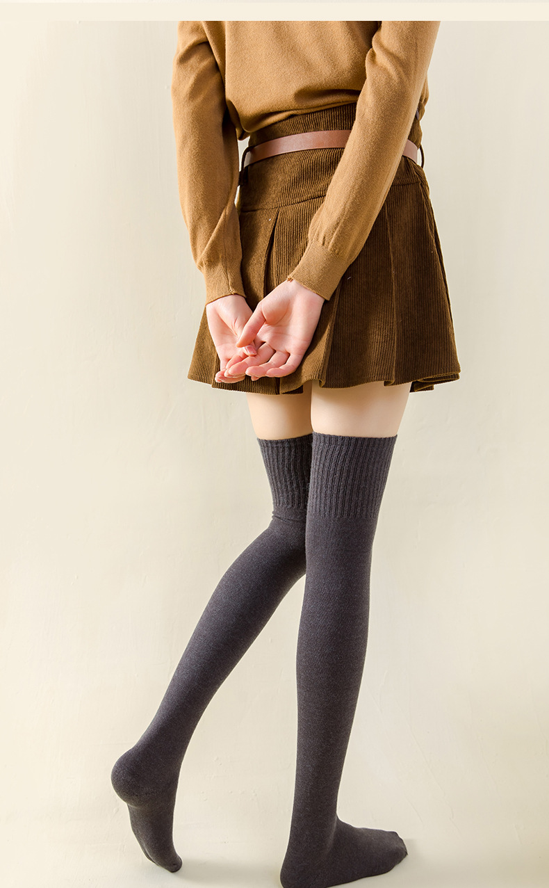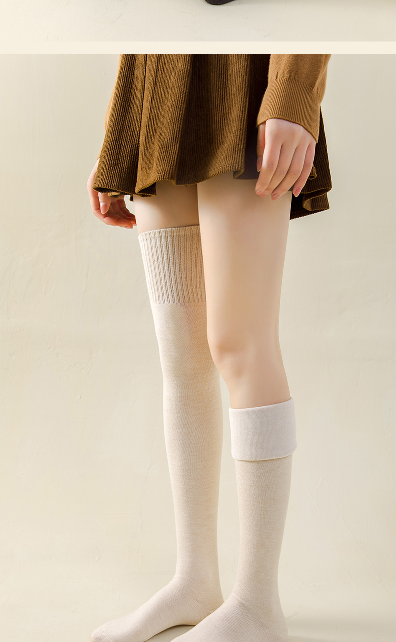 Calcetines de lana de rodilla para mujeres otoño y invierno, calcetines de cachemira de rodilla caliente, calcetines de muslo de cachemira de tubo alto para adelgazar