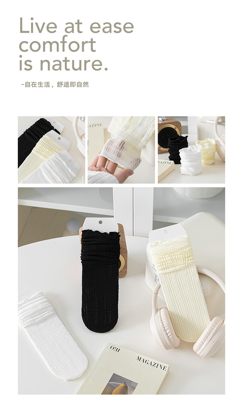 Calcetines de pila para mujeres super delgadas calcetines de encaje hueco transpirables a rayas blancasjk calcetines de mujer calcetines de viento