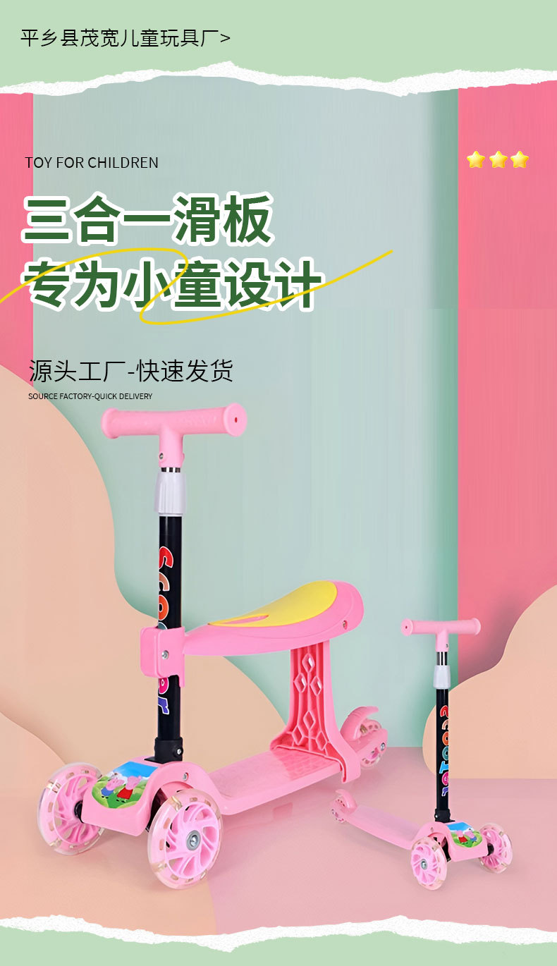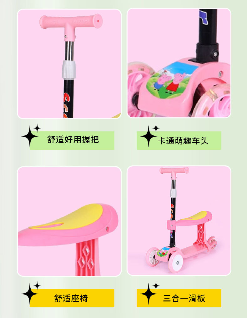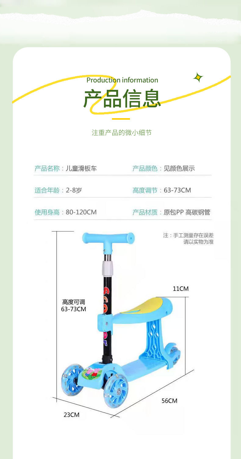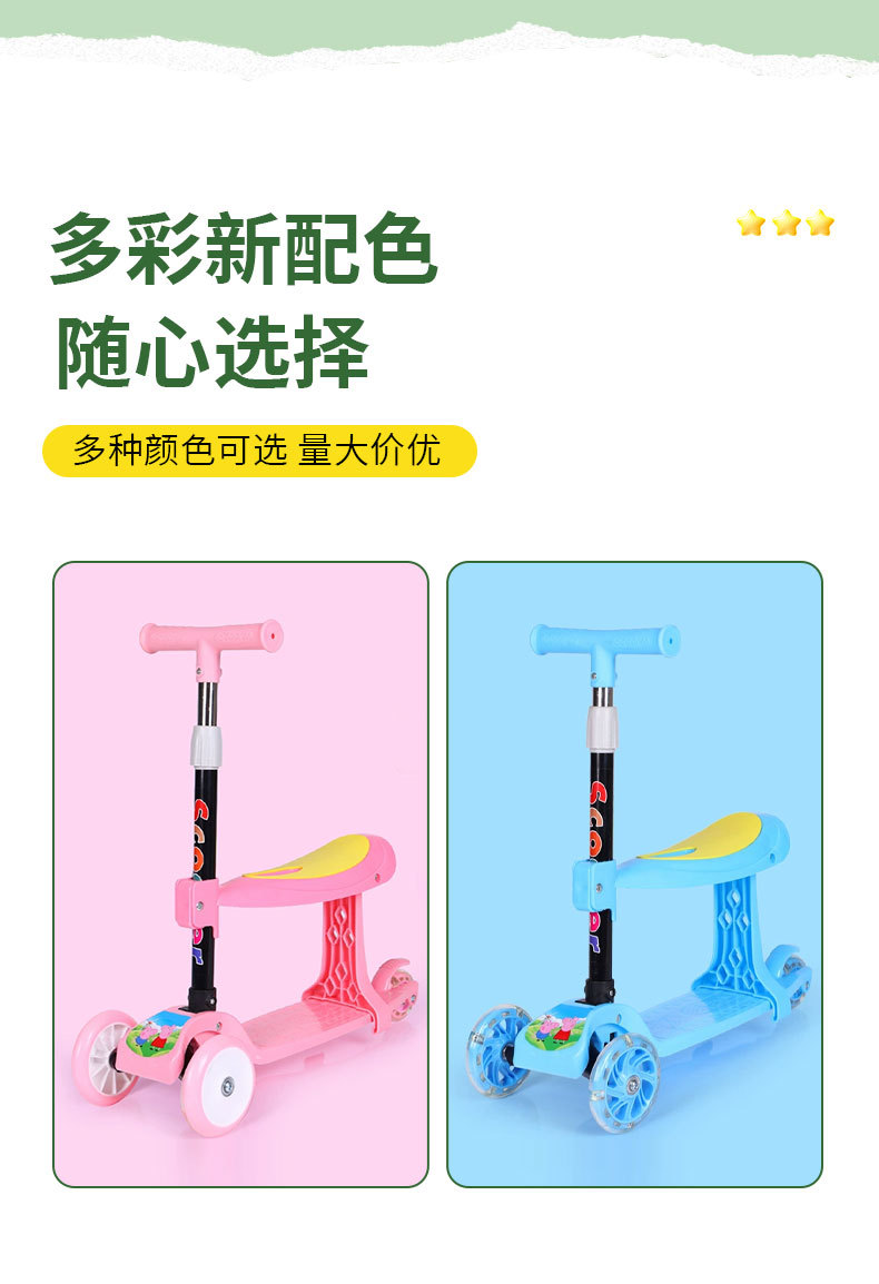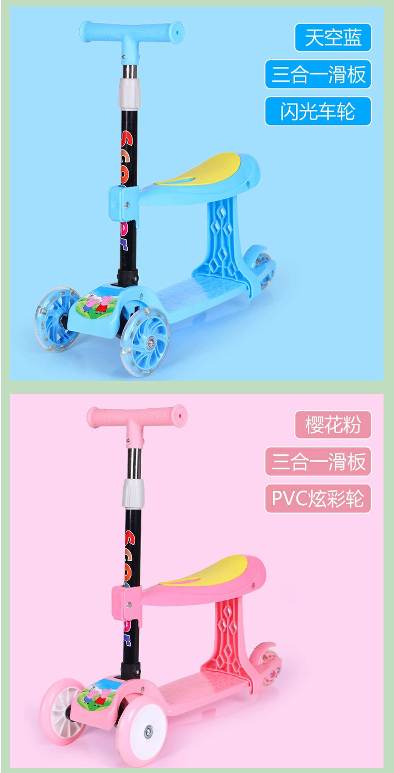 Patinete infantil tres en uno con asiento, ajuste de altura de cuatro velocidades, apto para bebés de 2 a 8 años, patinete plegable.