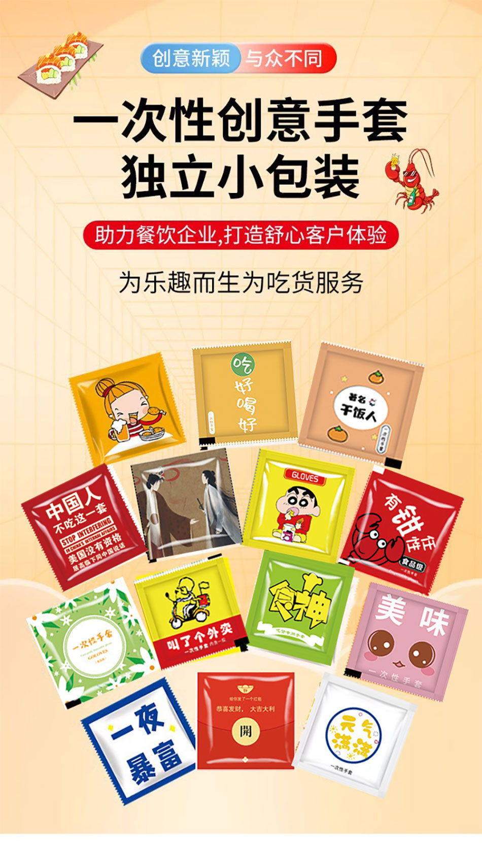 Guantes desechables de embalaje independiente de guantes de grado alimenticio un paquete de dos paquetes de comida para llevar un paquete pequeño creativo de restauración pequeña