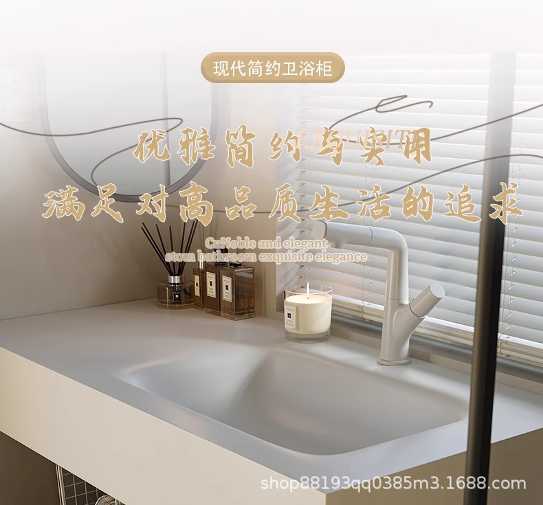 Tablero de roca doblado en caliente, lavabo integrado de cerámica sin costuras, combinación de mueble de baño, tocador moderno, armario de lavado de manos y lavabo