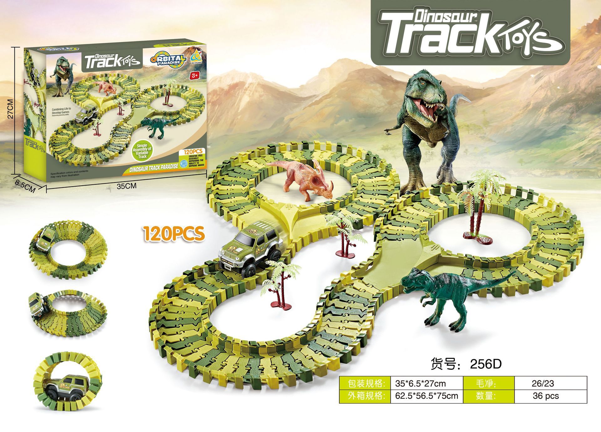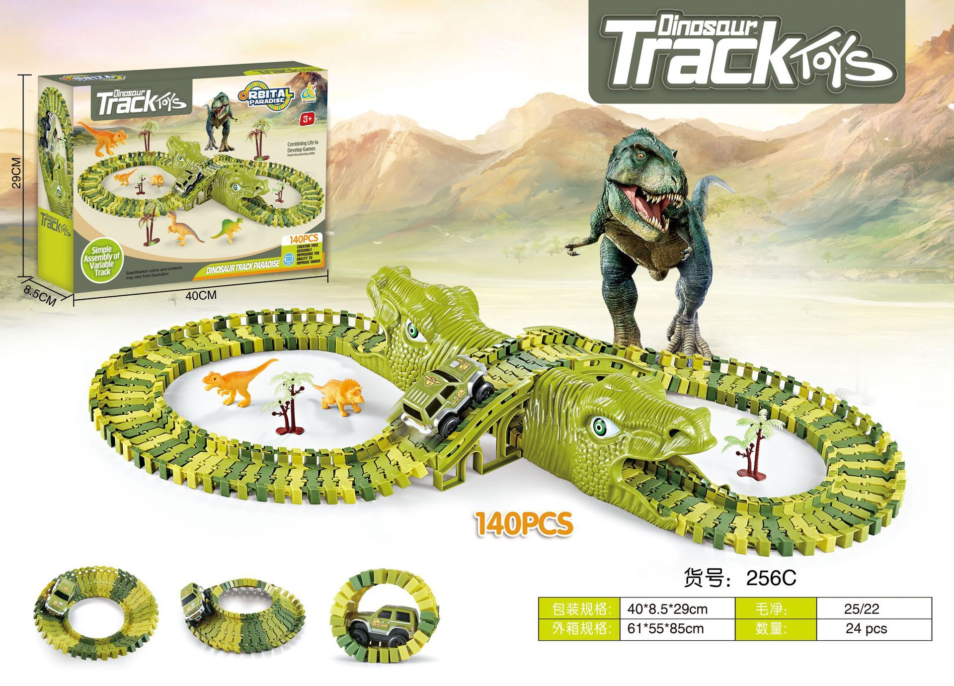Dinosaurios transfronterizos explosivos tren eléctrico montaña rusa montaña automóvil ensamblado juguetes para niños gran parque de aventuras