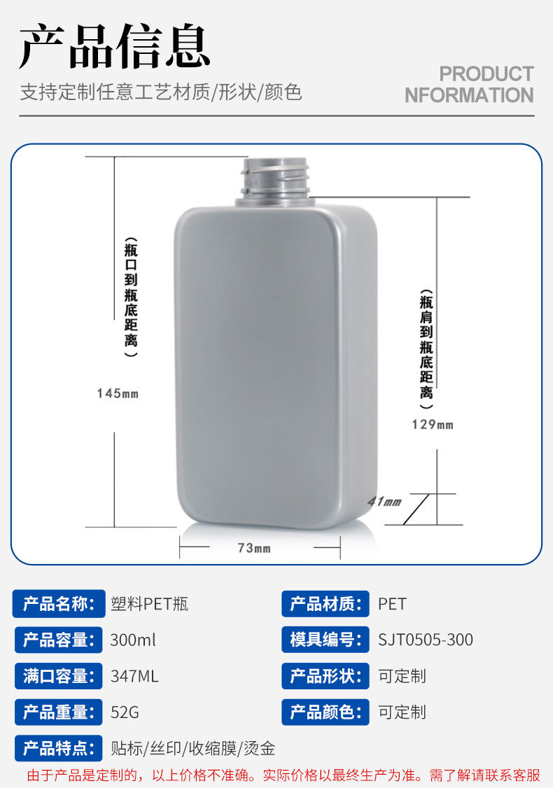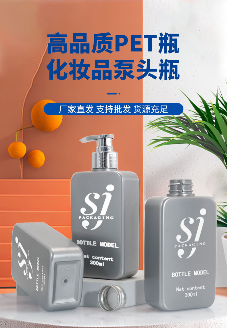 Botella de champú personalizada al por mayor de 300 ml, botella plana de plástico PET, botella de gel de ducha, botella de acondicionador, botella de loción corporal, botella de desinfectante de manos
