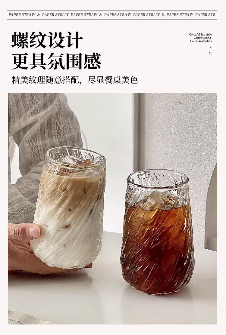 Taza de café de vidrio con alto contenido de borosilicato, taza de agua de latte americano de hielo de gran capacidad para el hogar, taza transparente resistente a altas temperaturas, taza de agua de té verde