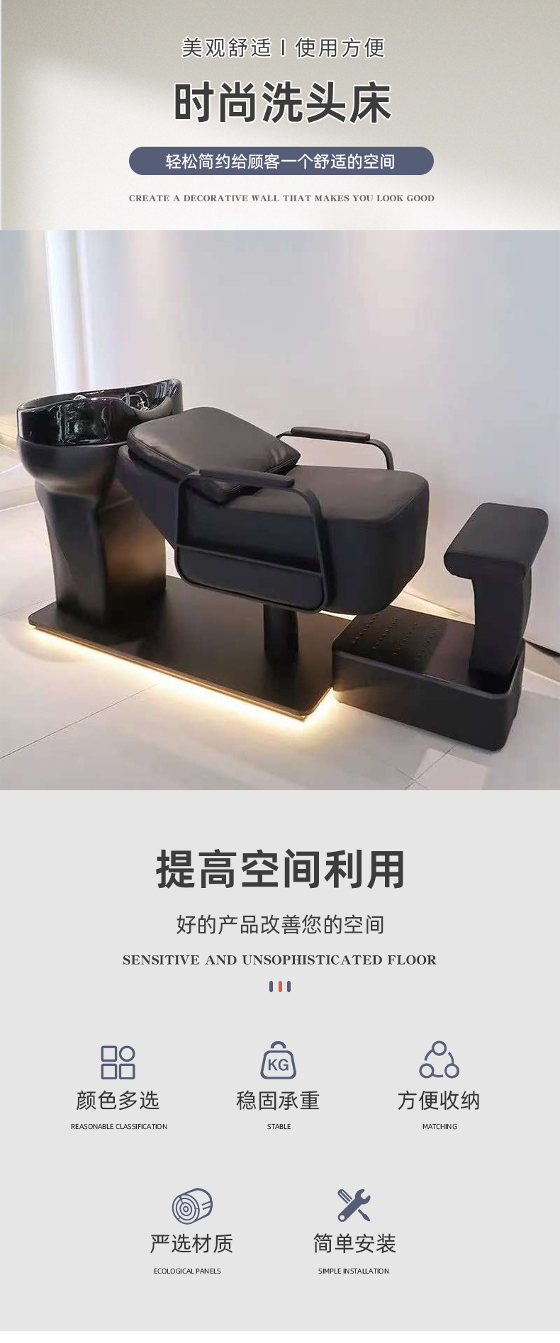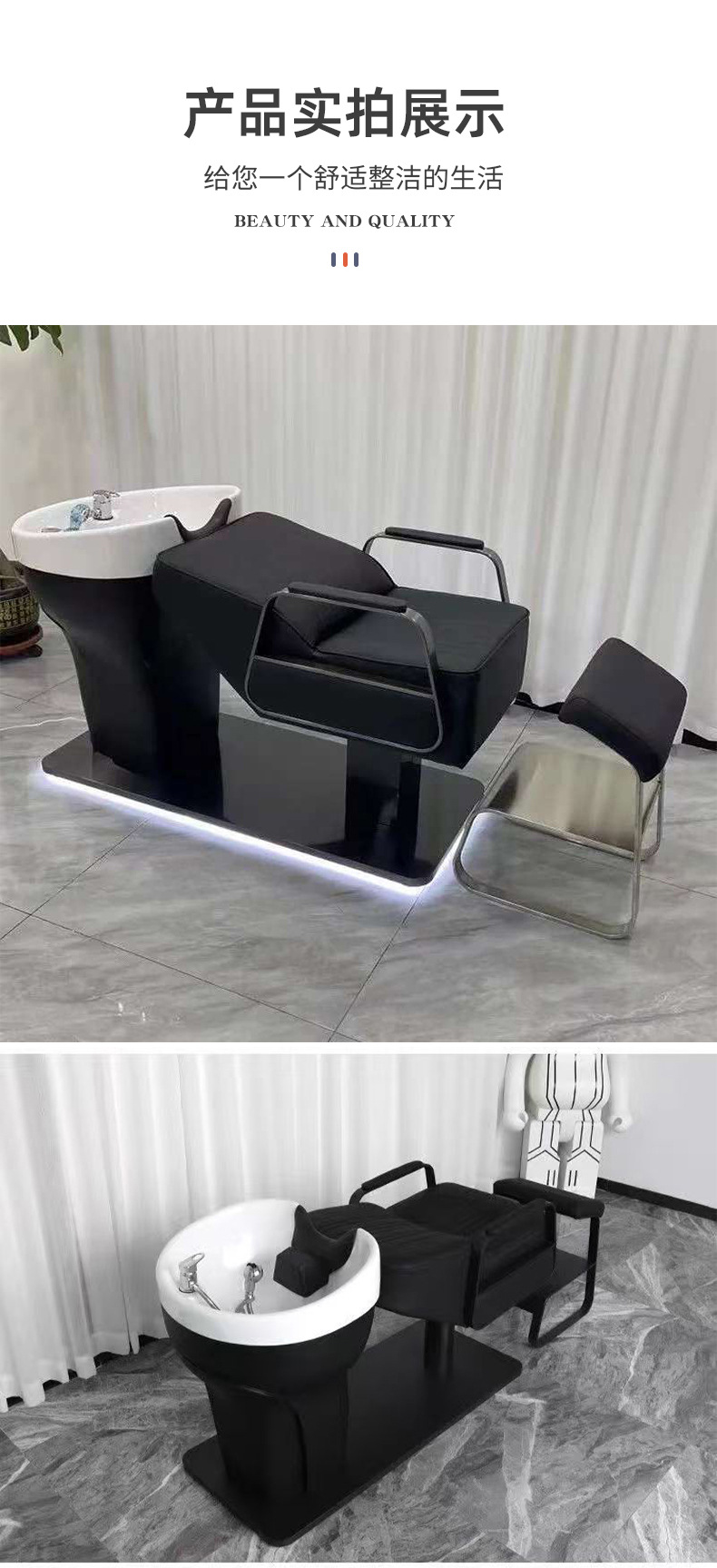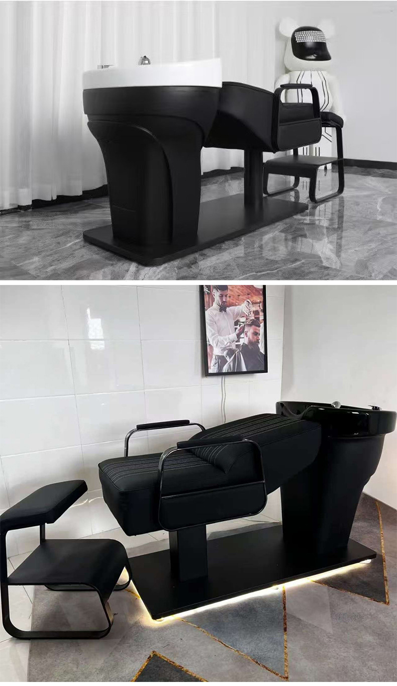Barbería de celebridades de Internet, cama de champú, peluquería, lavabo profundo de cerámica, peluquería, cama de descarga, cama de masaje semi-reclinada, estándar oficial