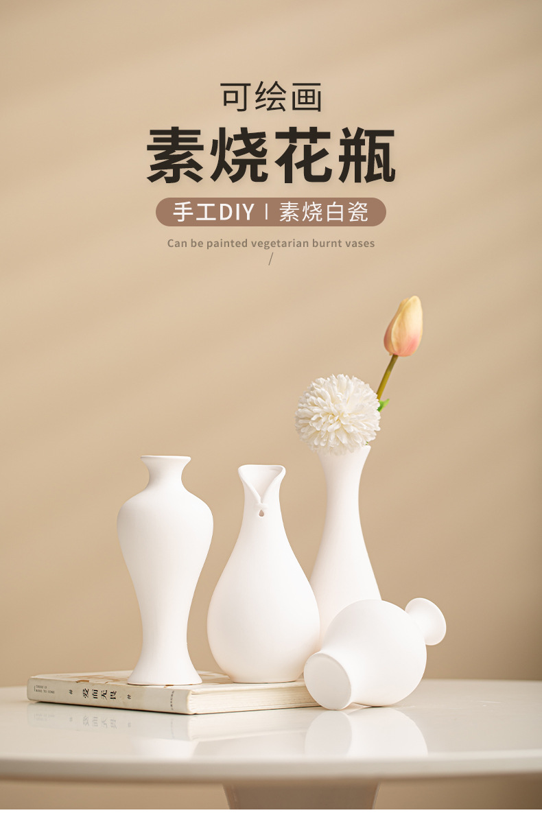 Jarrón de cerámica en blanco simple bricolaje blanco embrión bajo vidriado pintura de color sin yeso pintura de la mano de los niños de cerámica en blanco liso envío gratuito