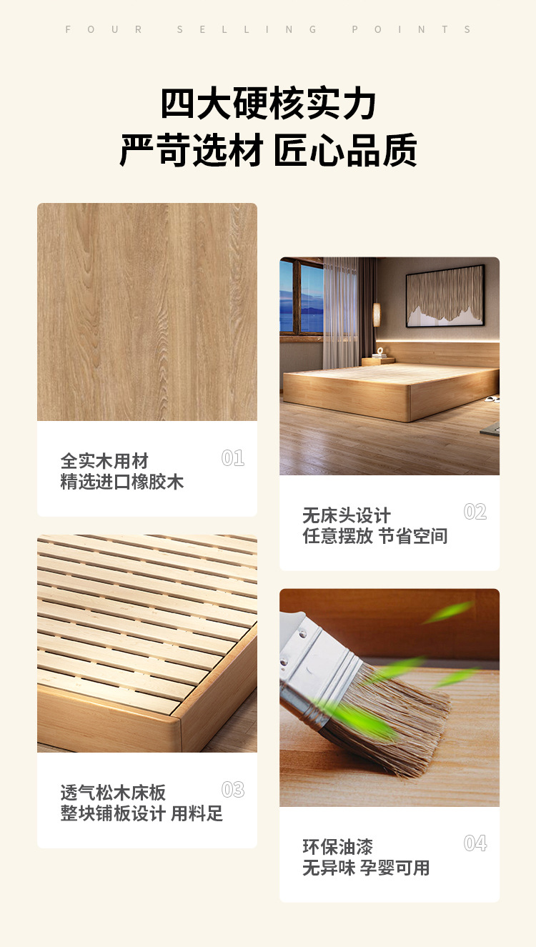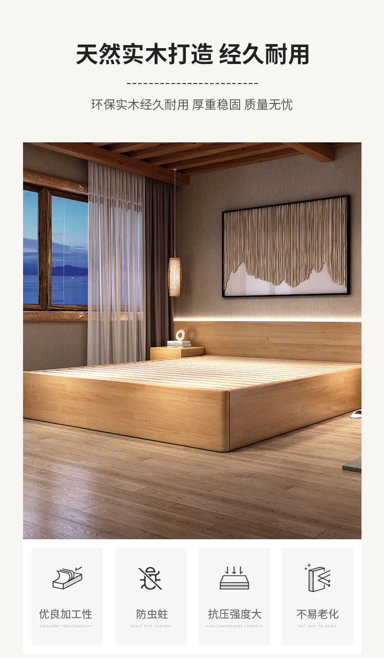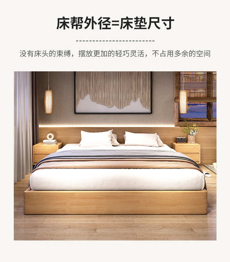 Cama de madera maciza Tatami Residence Hotel cama de piso almacenamiento de presión de aire cama grande 2.2m cualquier tamaño cama de costilla