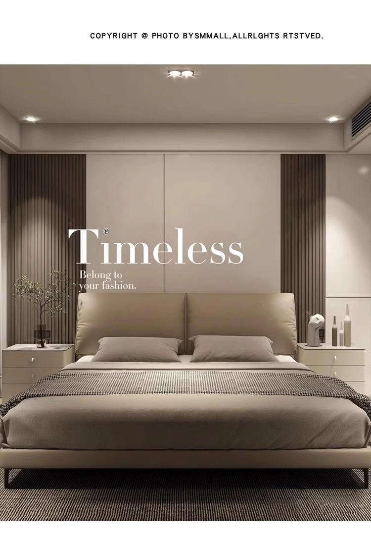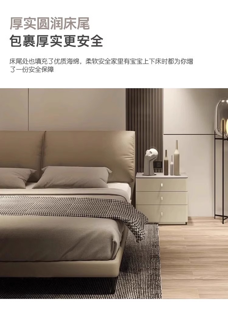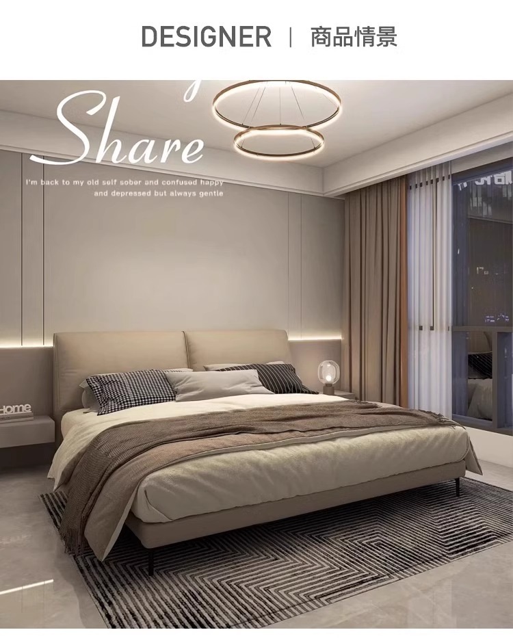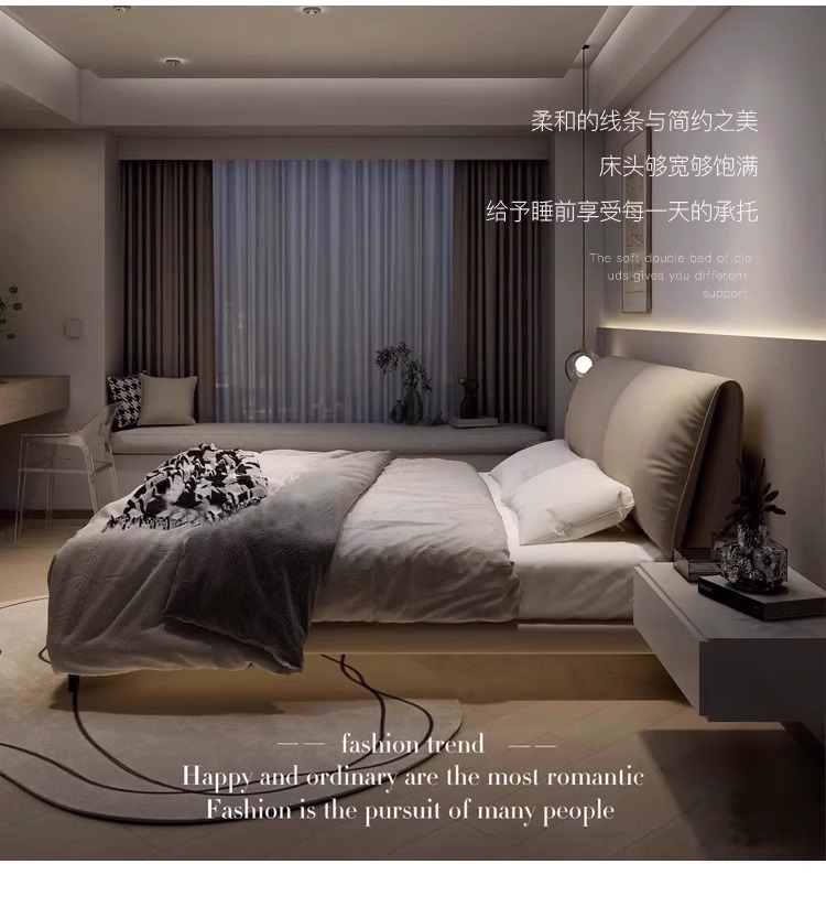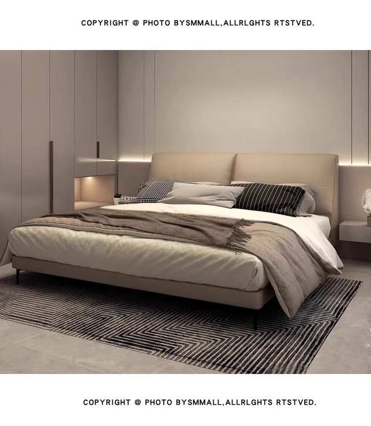 Cama de cuero con orejas de elefante, lujo ligero, dormitorio principal simple moderno, cama grande, cama de boda minimalista italiana, cama de cuero