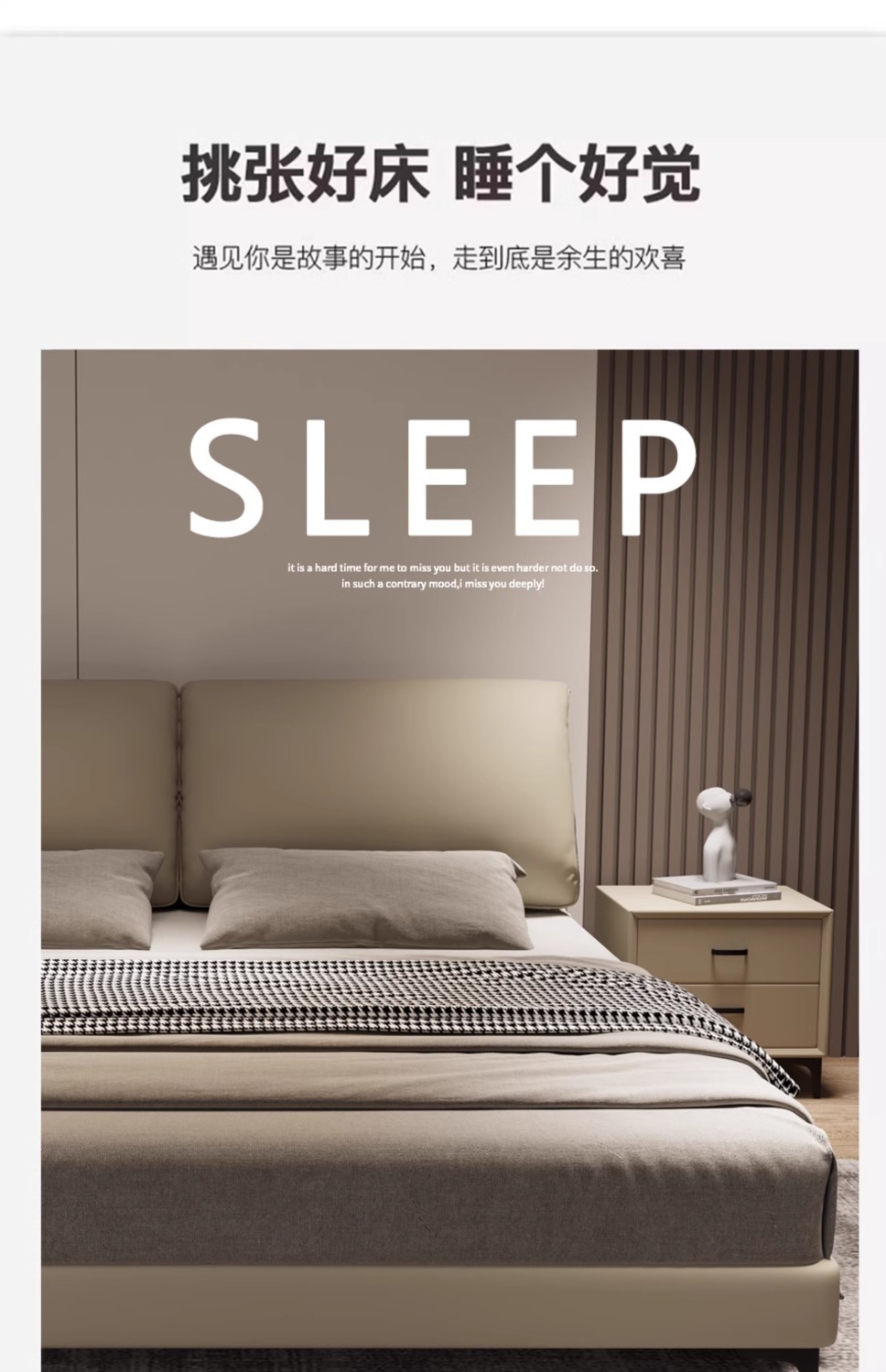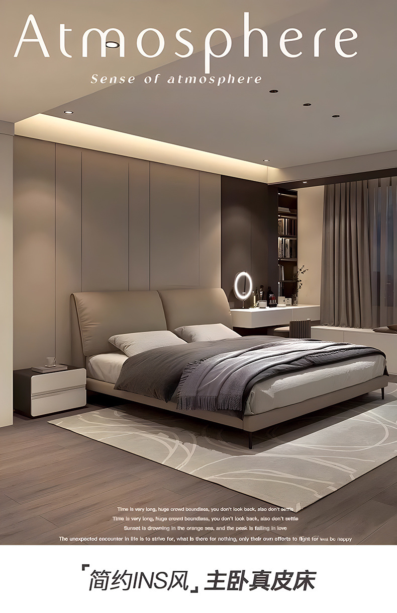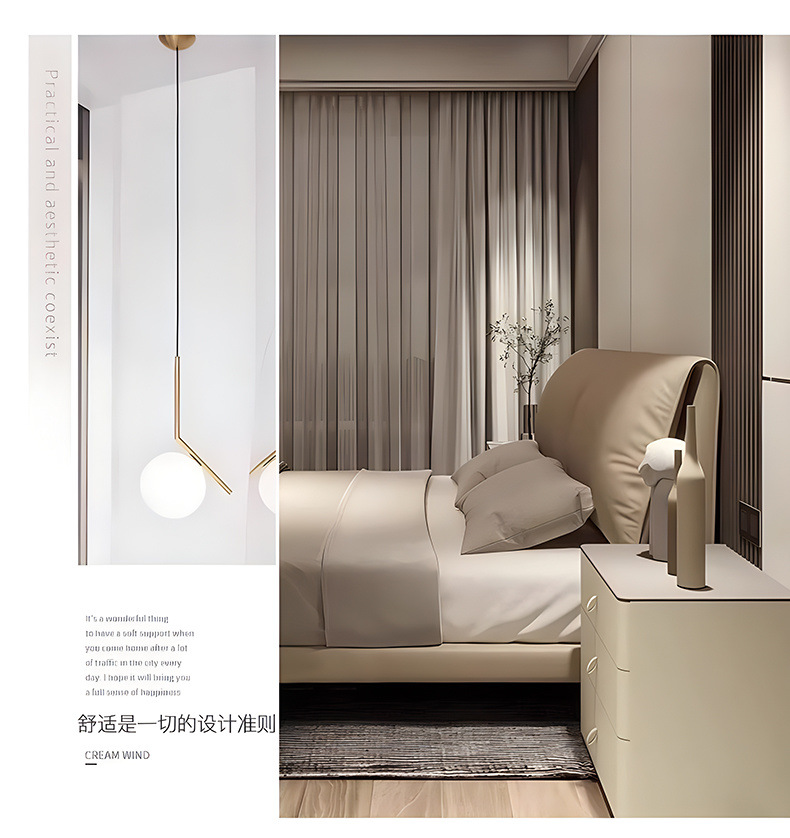 Cama de cuero con orejas de elefante, lujo ligero, dormitorio principal simple moderno, cama grande, cama de boda minimalista italiana, cama de cuero