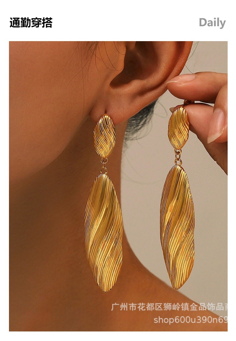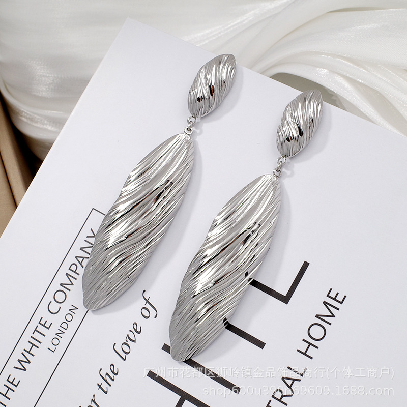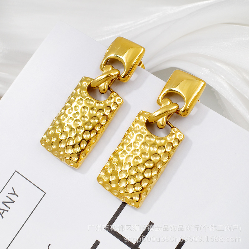 Venta caliente transfronteriza Pendientes de acero de titanio europeos y americanos, temperamento retro de la industria pesada, textura exagerada y pulida, pendientes personalizados, grandes