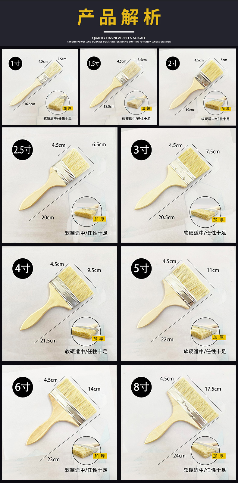 | Especificaciones | Cepillo mango de madera engrosada 1 pulgada,Cepillo de mango de madera gruesa de 1,5 pulgadas,Cepillo de mango de madera engrosada de 2 pulgadas,Mango de madera gruesa cepillo de 2,5 pulgadas,Cepillo de mango de madera gruesa de 3 pulgadas,Cepillo de mango de madera engrosada de 4 pulgadas,Cepillo de mango de madera engrosada de 5 pulgadas,Cepillo de mango de madera gruesa de 6 pulgadas,Mango de madera gruesa cepillo de 8 pulgadas |