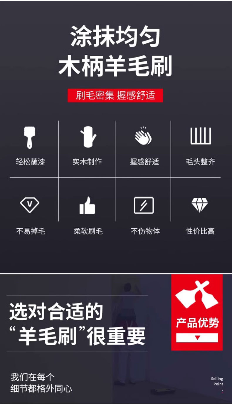 Pincel de lana, pincel para pintura a base de agua, pincel de cerdas suaves, revestimiento de pintura de látex, pincel para pintar barbacoas y hornear, pincel para aceite, multifuncional