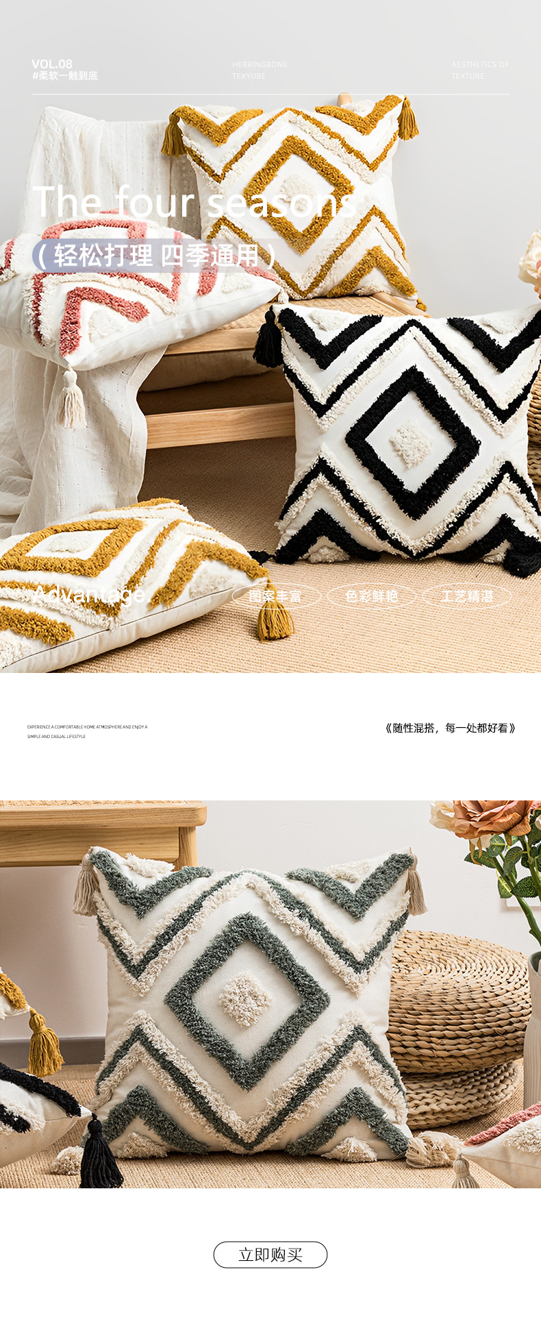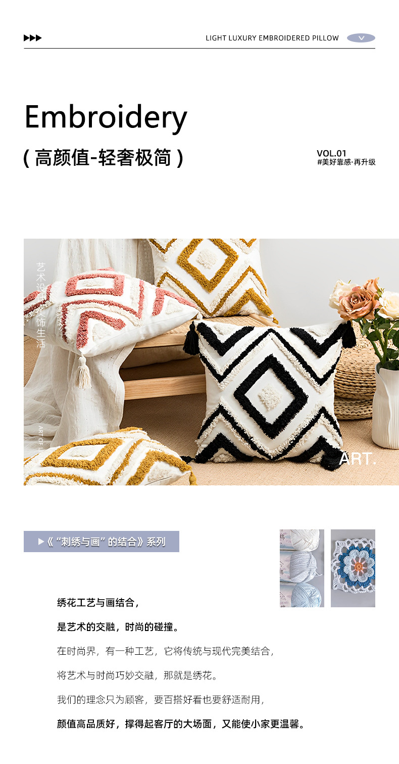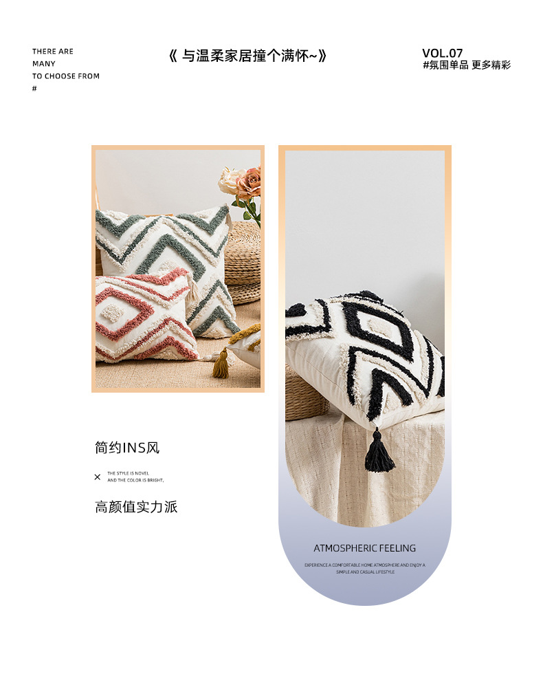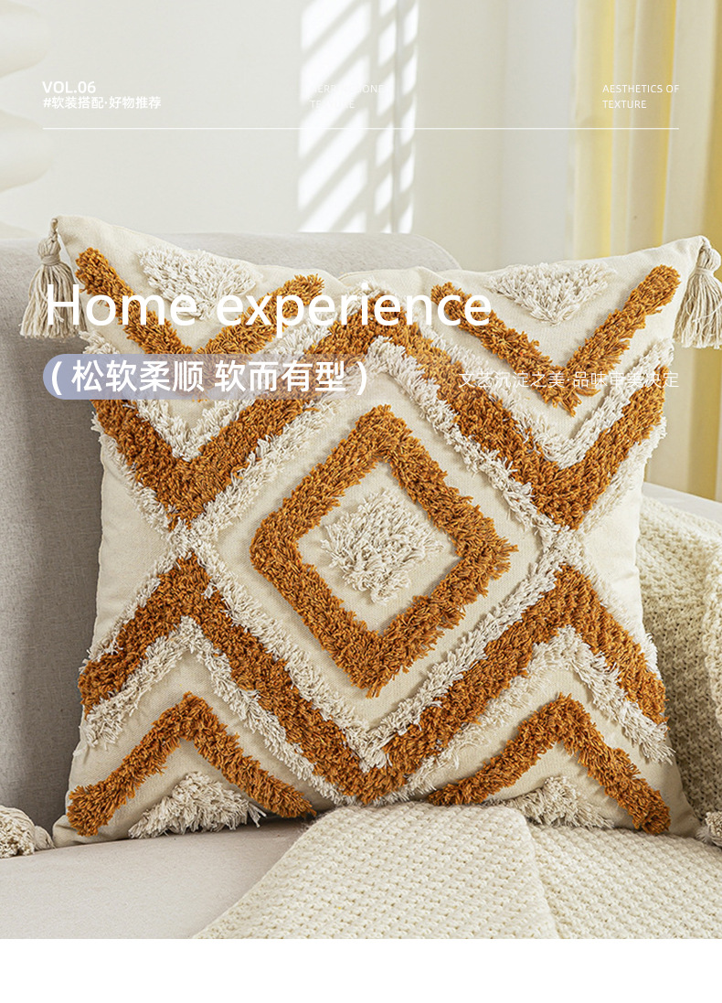 Almohada con mechones de estilo bohemio Cojín con flecos étnicos marroquíes Cojín con mechón de sofá de sala de estar Tongfang Funda de almohada