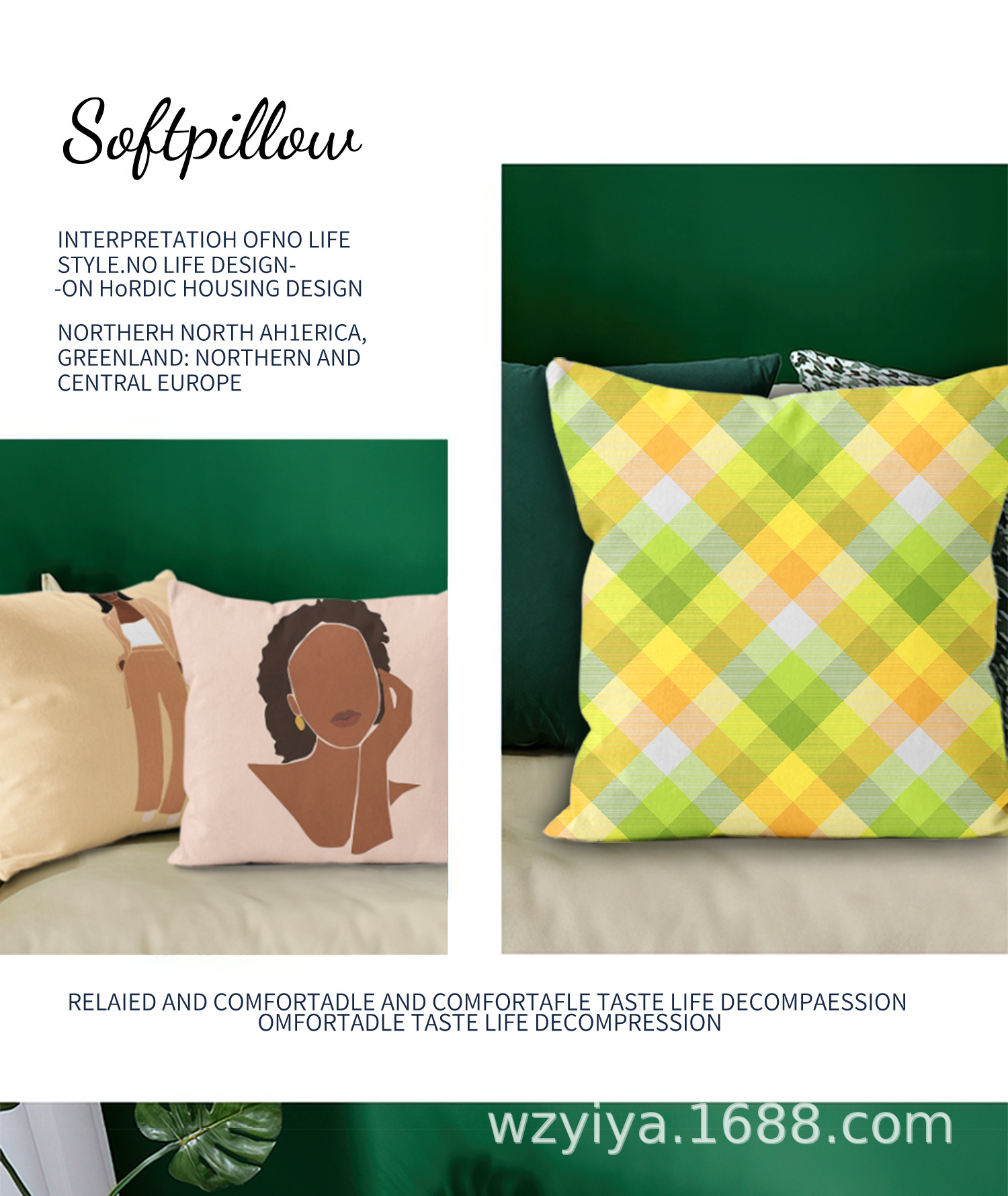 Simple amarillo verde abraza almohada nueva decoración cuadrada moderna sala de estar almohada de almuerzo de oficina almohada de protección de cintura