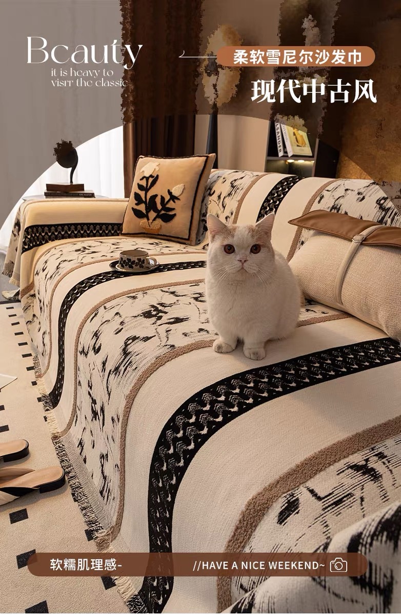 Toalla de sofá de estilo medieval alta sensación de cuatro estaciones general sofá de Chenille sofá cubierta de sofá cojín