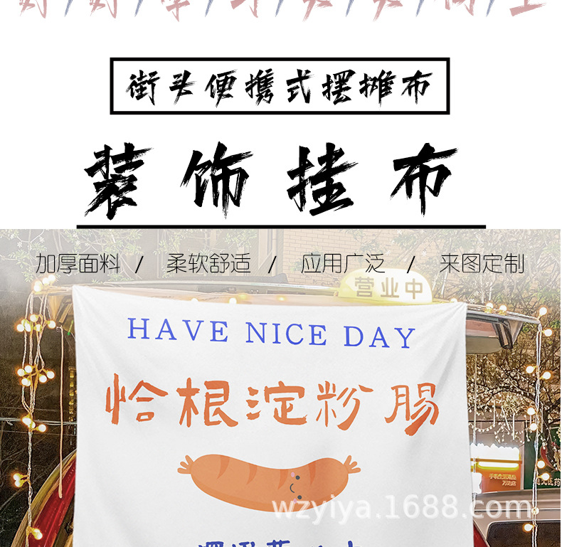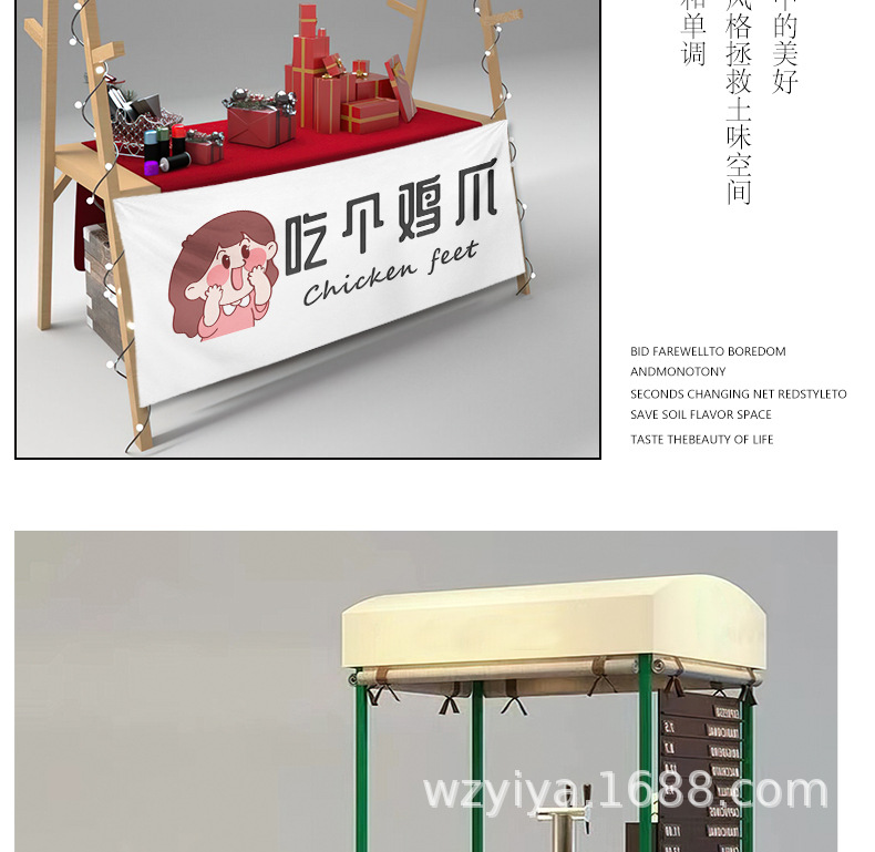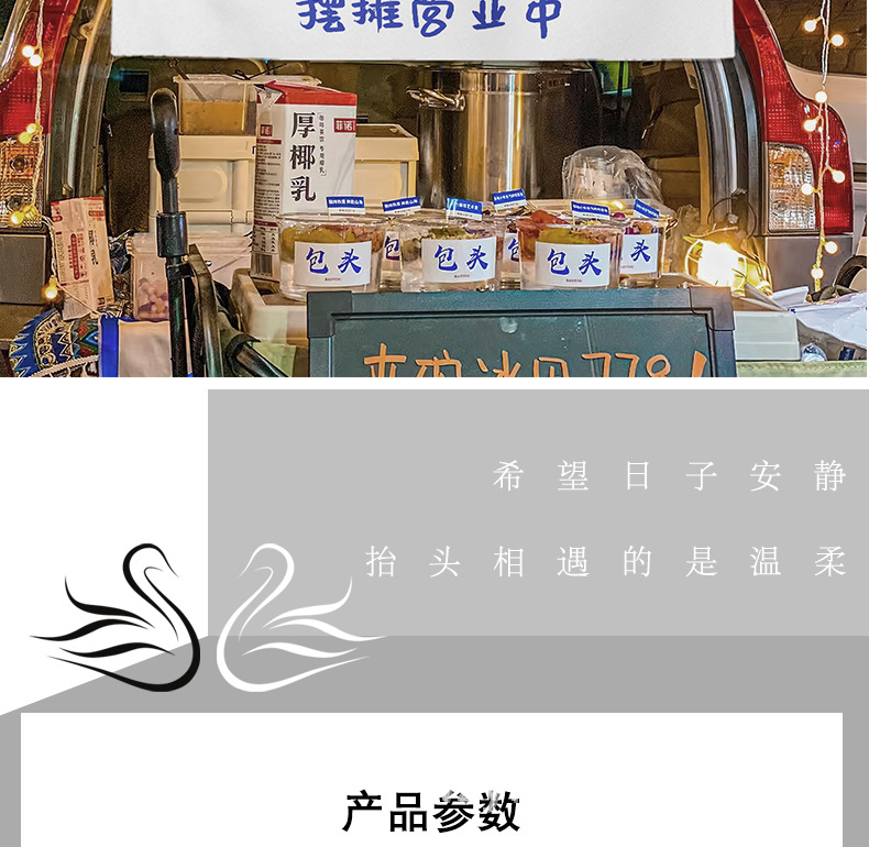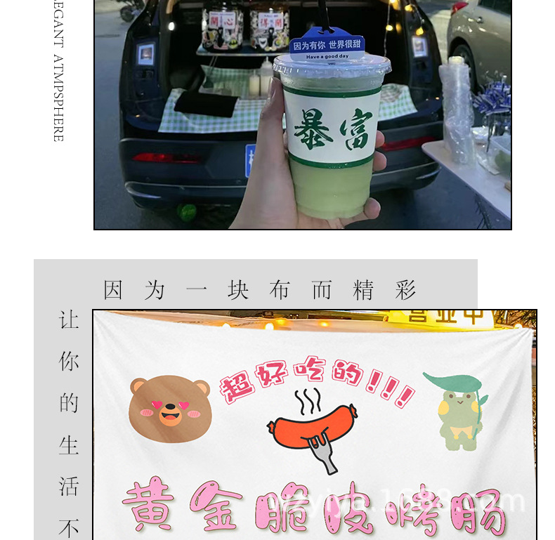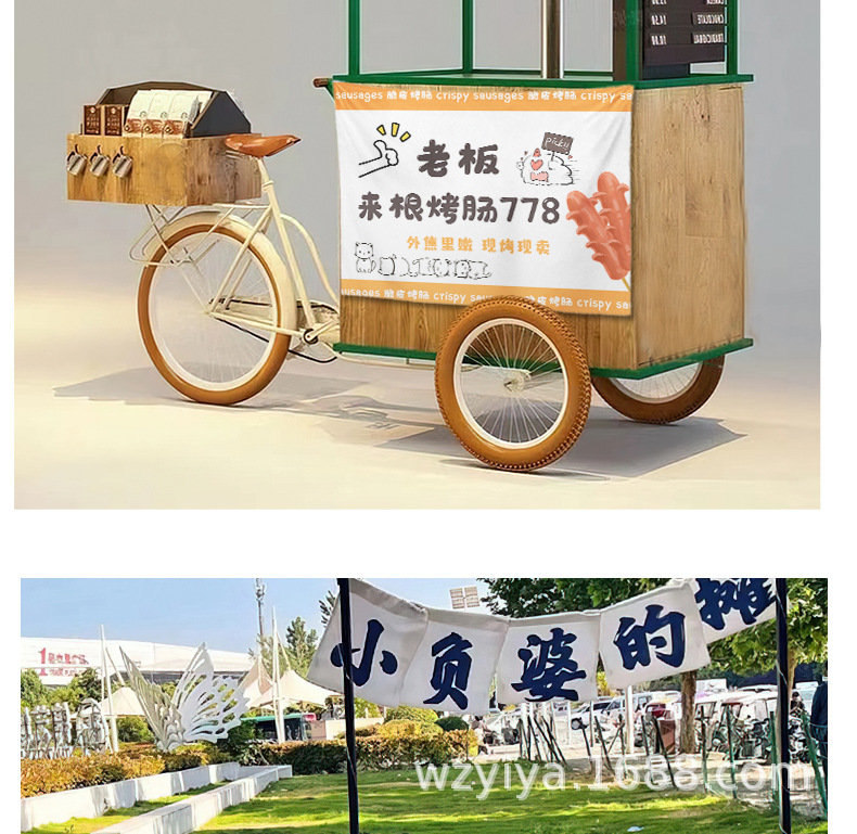 Salchias asadas, puestos de comida, mercados nocturnos, puestos de publicidad, letreros callejeros, puestos de publicidad