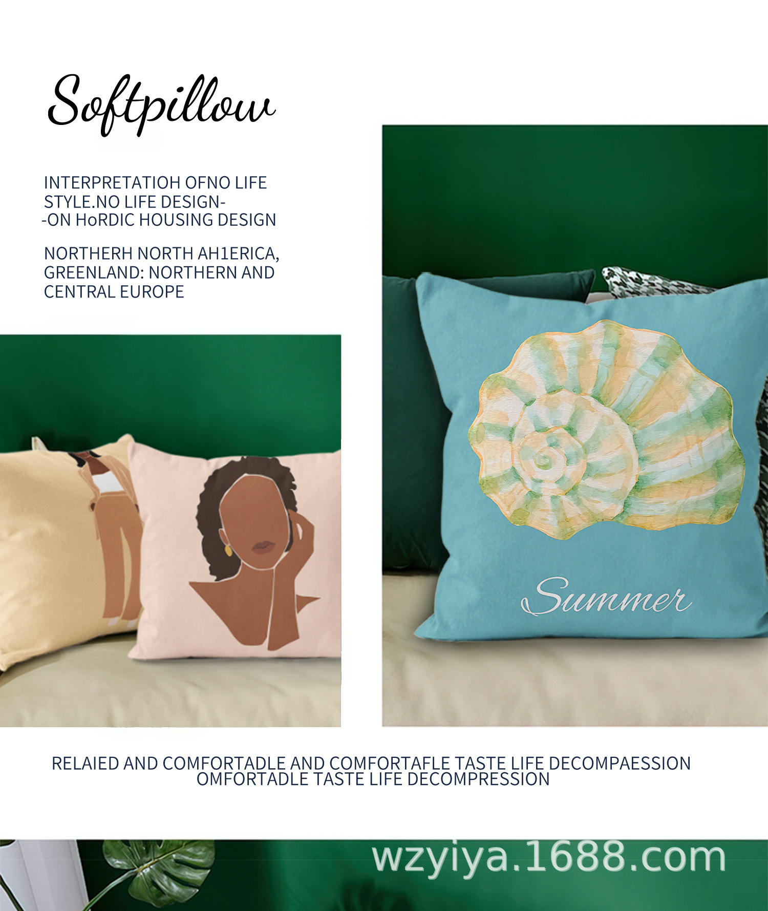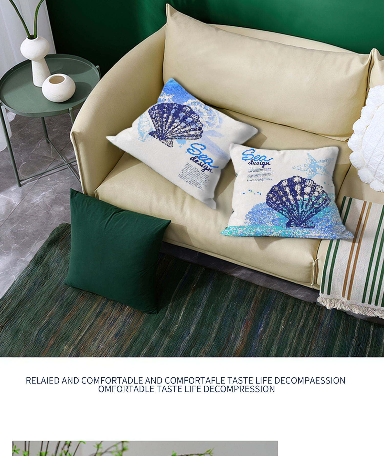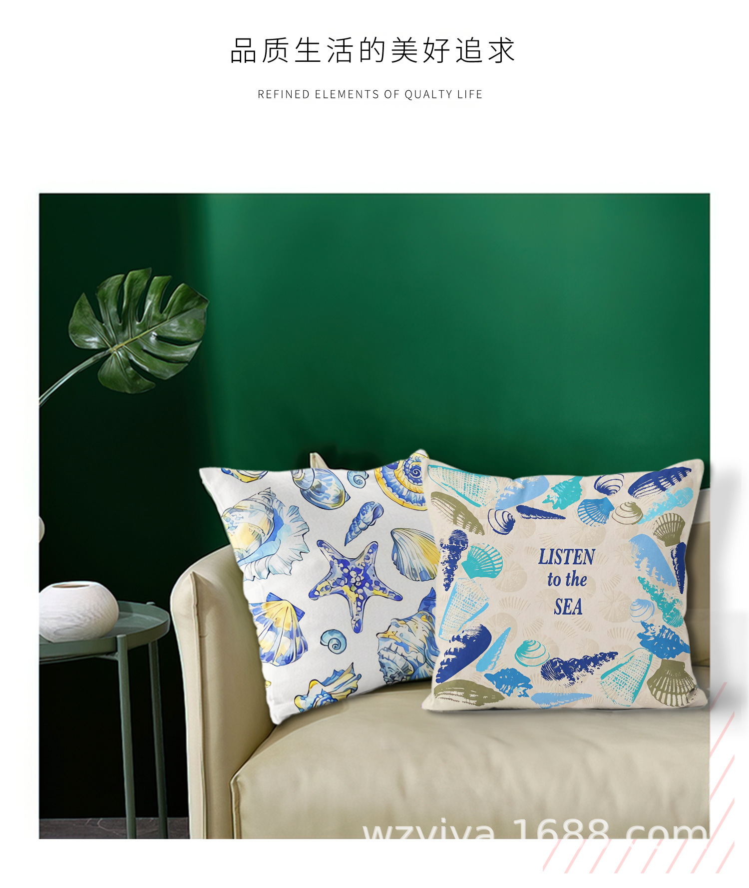 Sea shell impresión almohada de abrazo simple moderno sofá en el hogar cojín de respaldo decoración desmontable cuadrado almohada de cabeza de cama