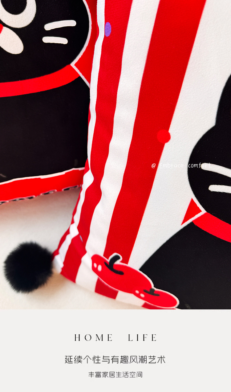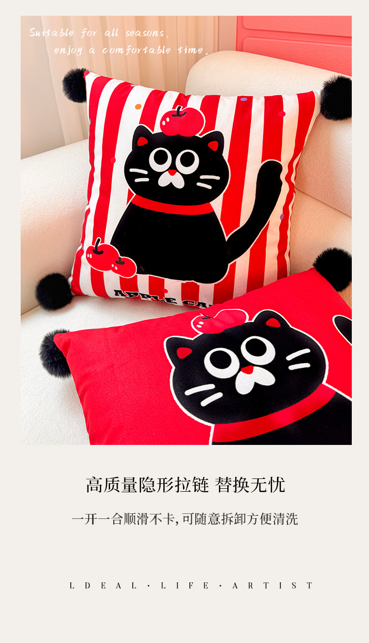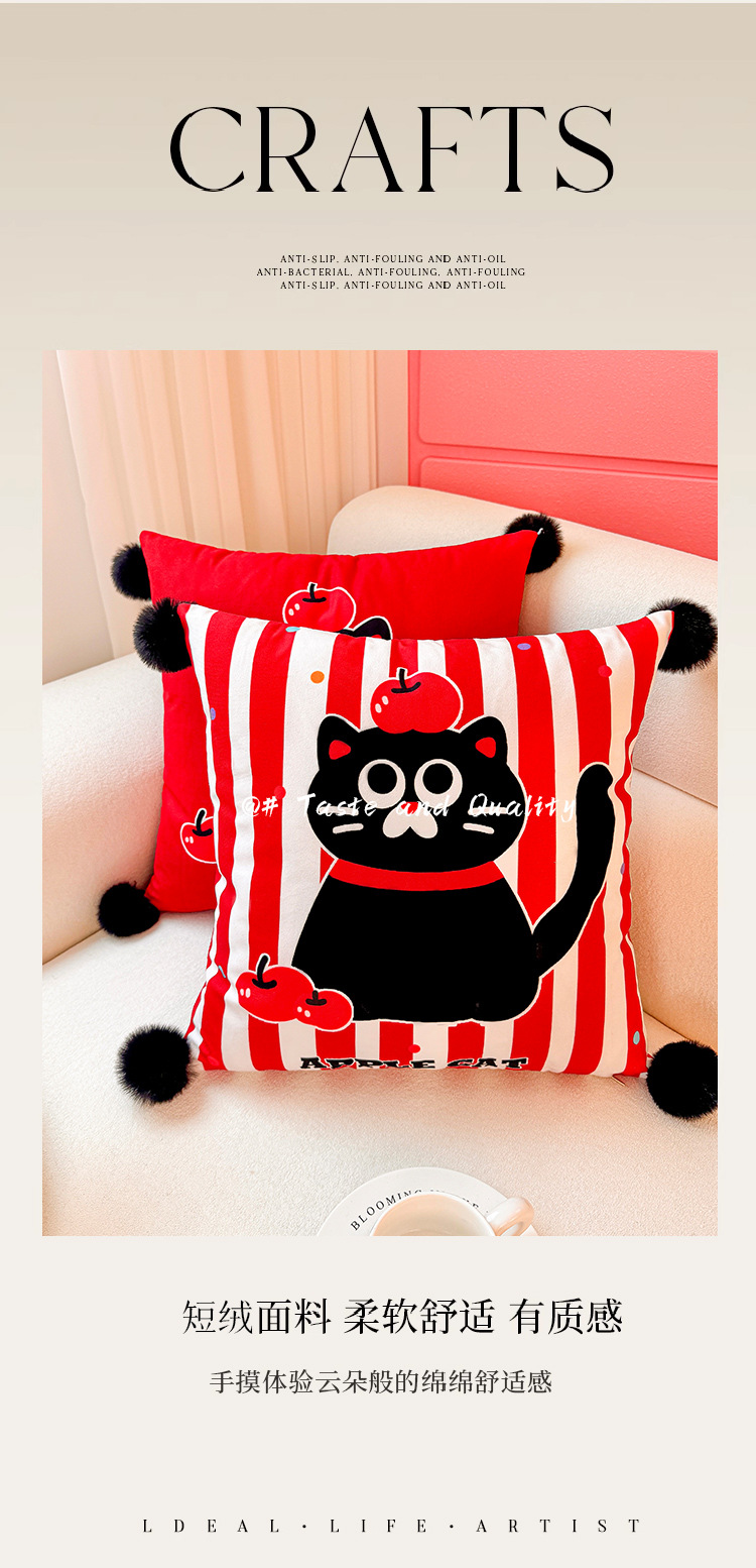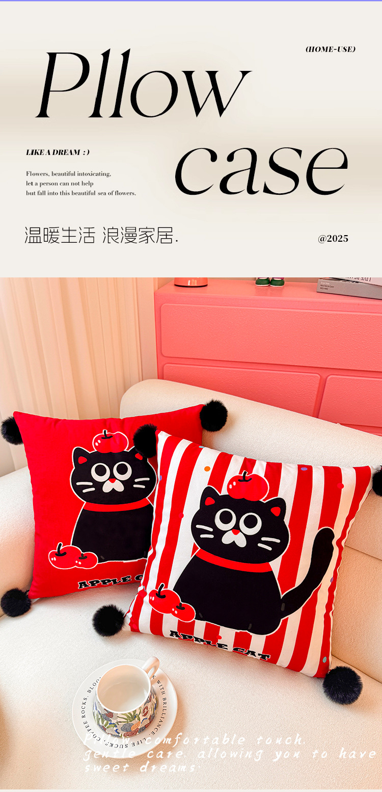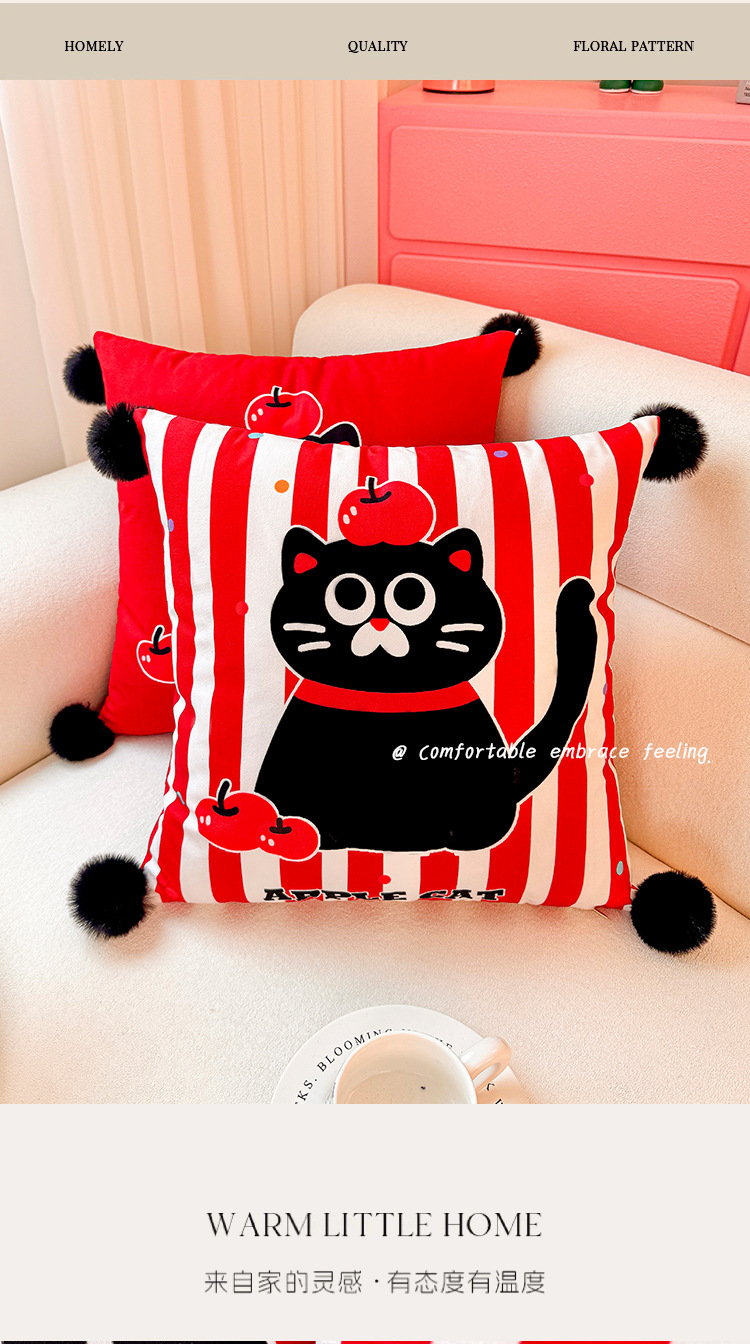 Apple Cat Dopamina Almohada Funda de almohada Sofá de sala de estar Almohada de cintura abstracta con estampado de cabecera Bola de pelo