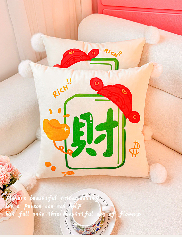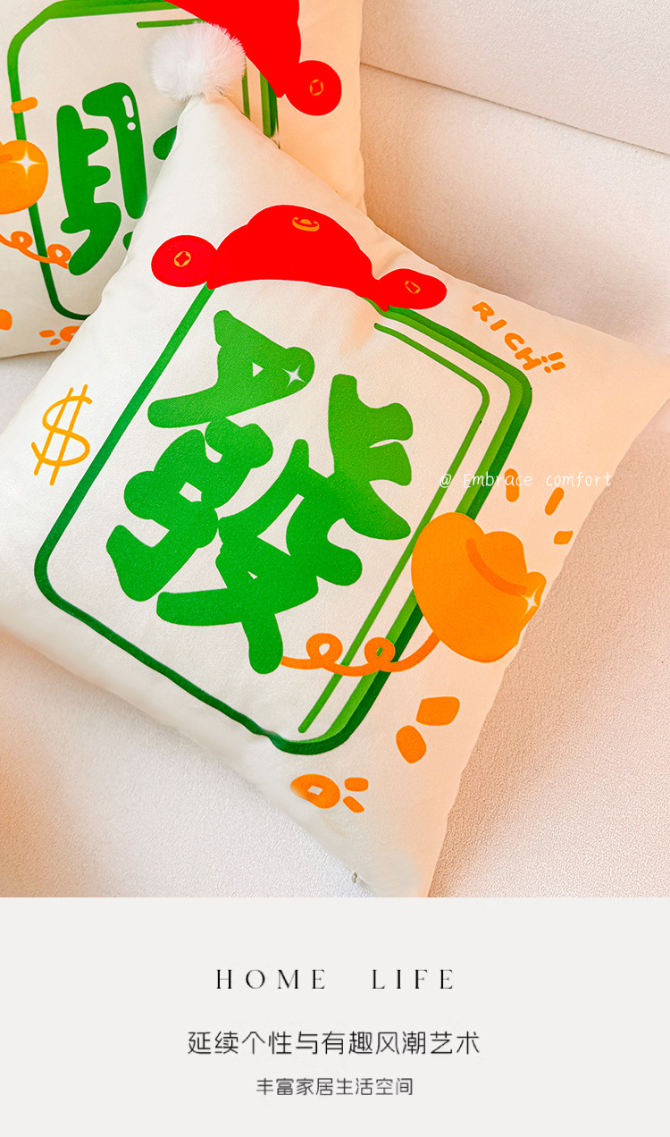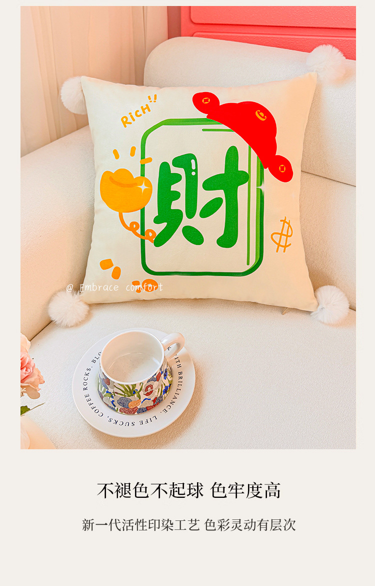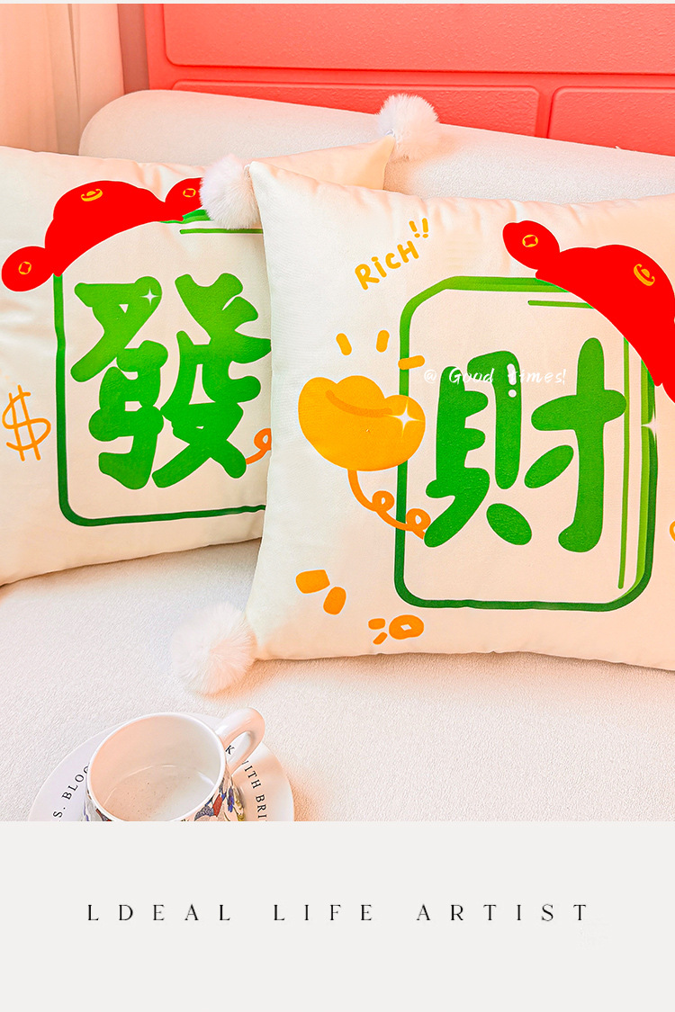 Mahjong Fortune Combination Almohada Funda de almohada Sala de estar Sofá Almohada Impresión de cabecera Almohada de cintura abstracta con bola de pelo