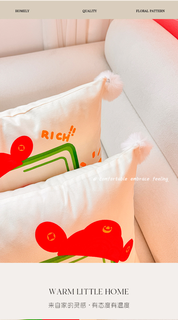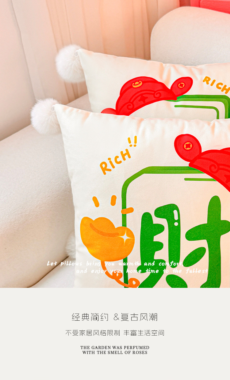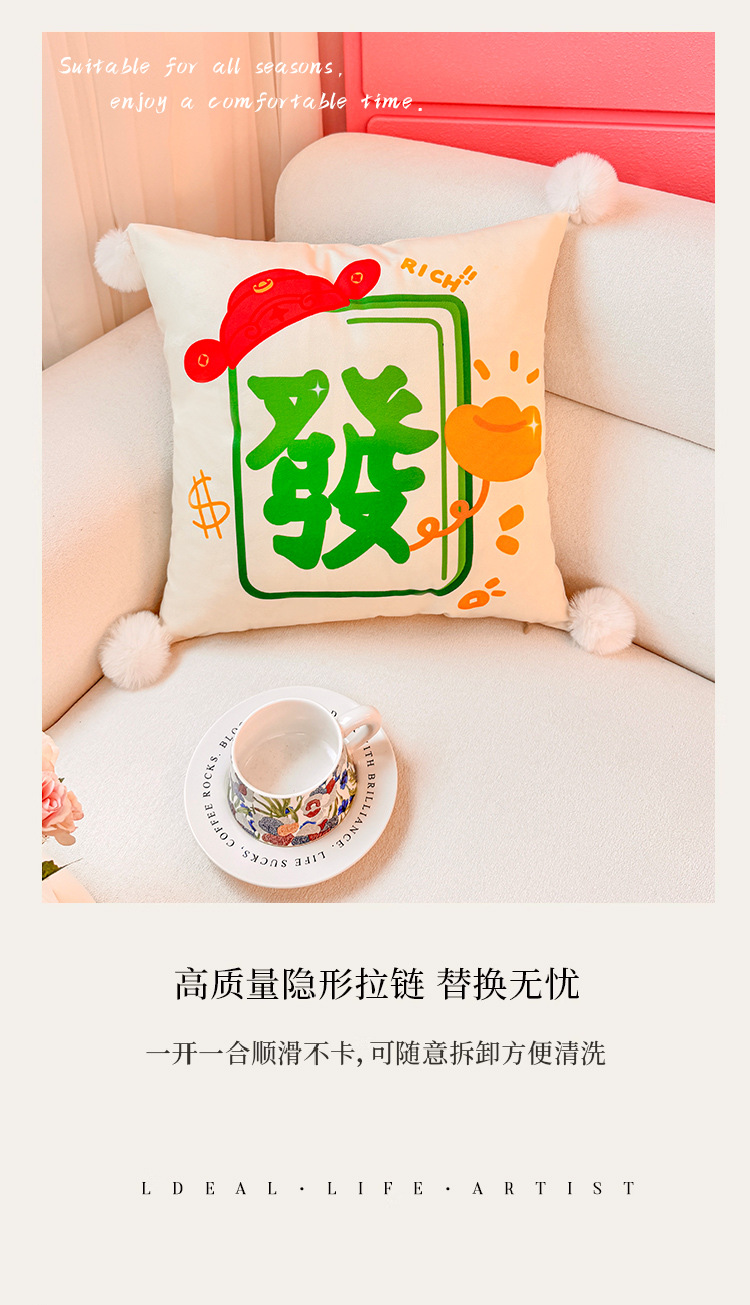 Mahjong Fortune Combination Almohada Funda de almohada Sala de estar Sofá Almohada Impresión de cabecera Almohada de cintura abstracta con bola de pelo
