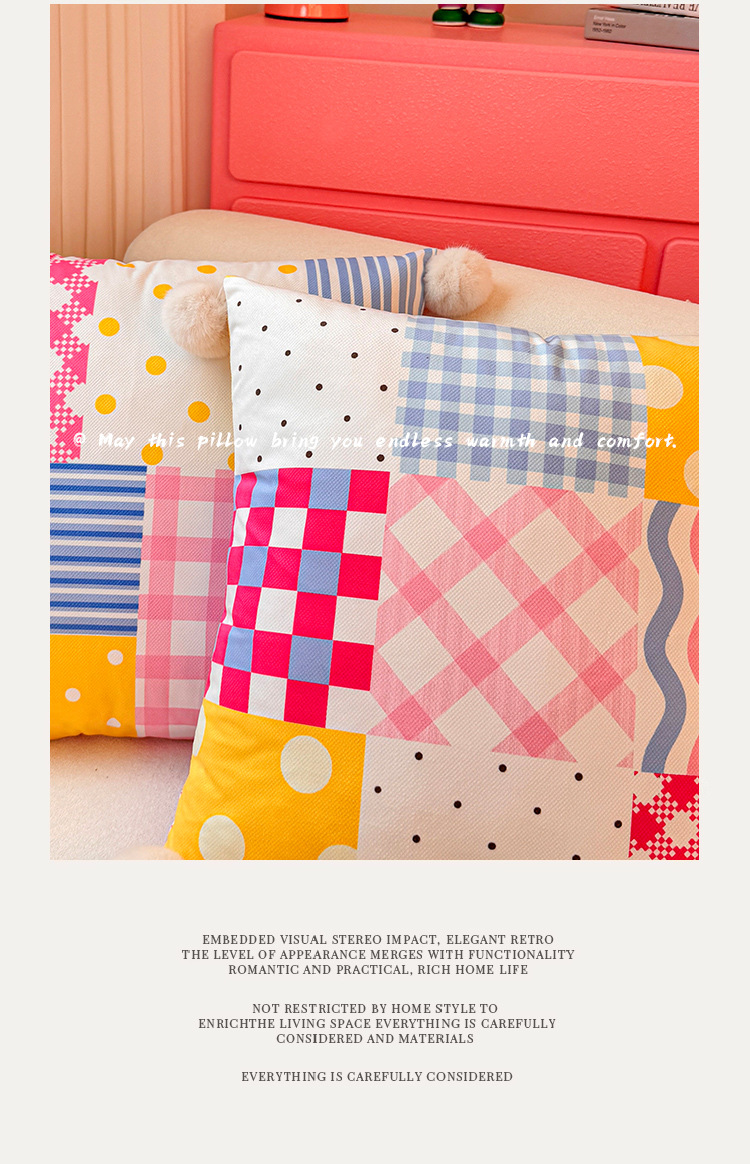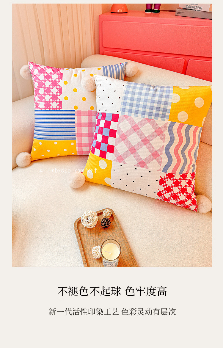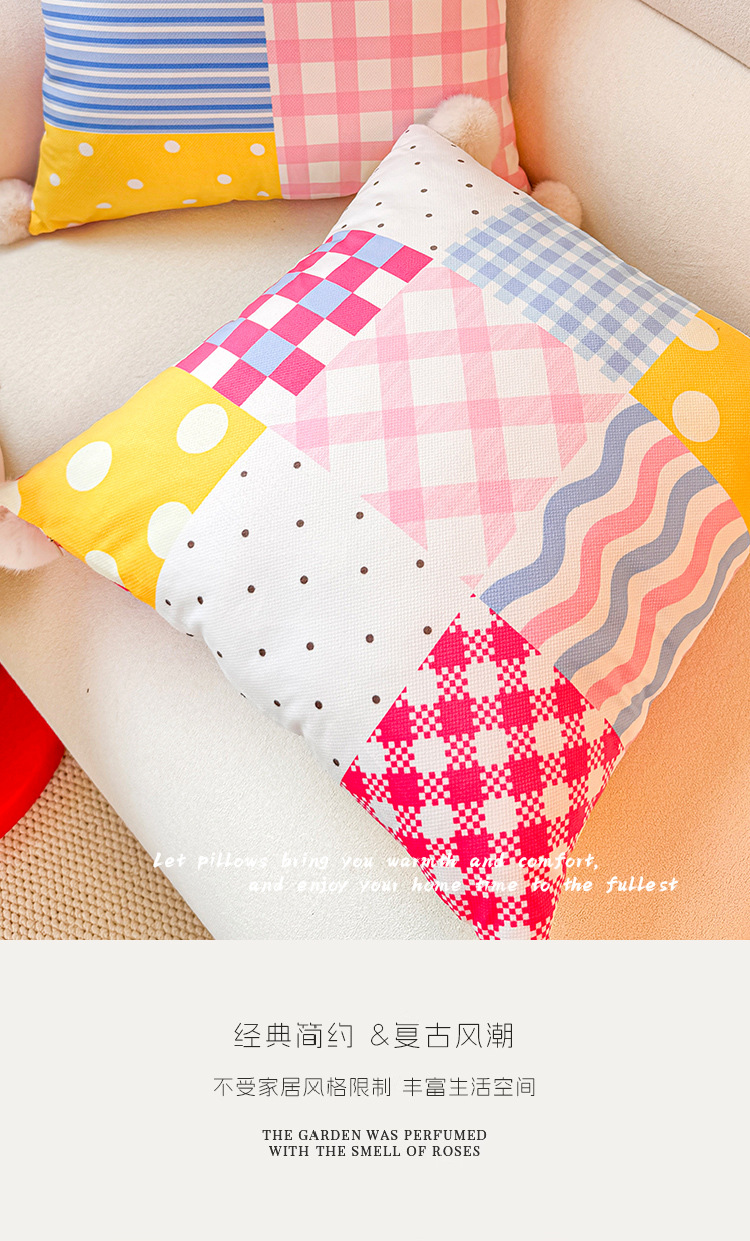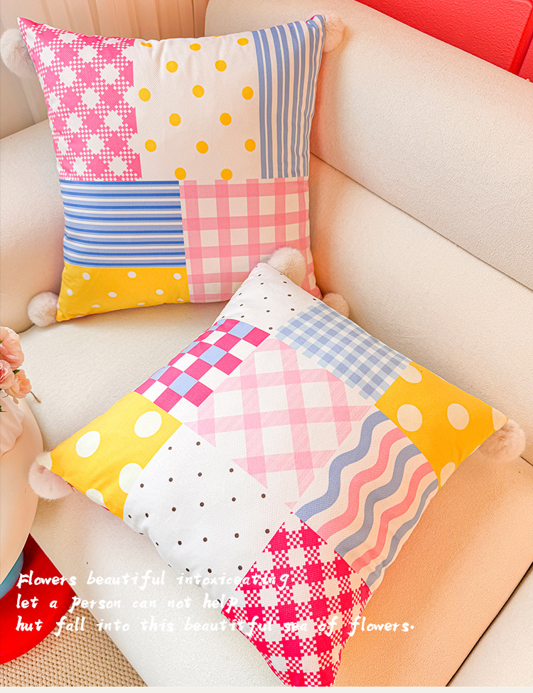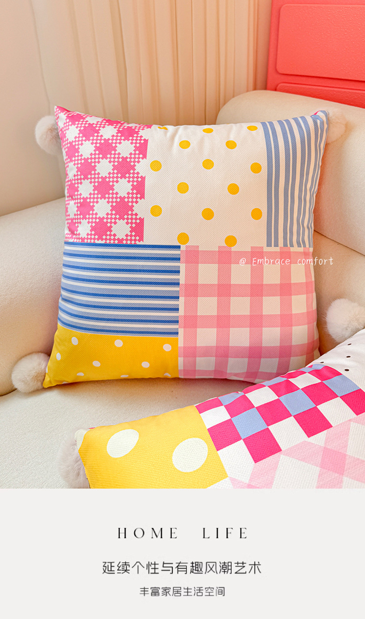 Almohada de dopamina geométrica, funda de almohada, sofá de sala de estar, almohada, impresión de cabecera, almohada de cintura abstracta, bola de pelo