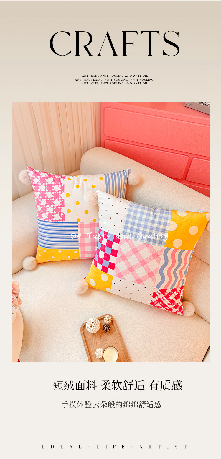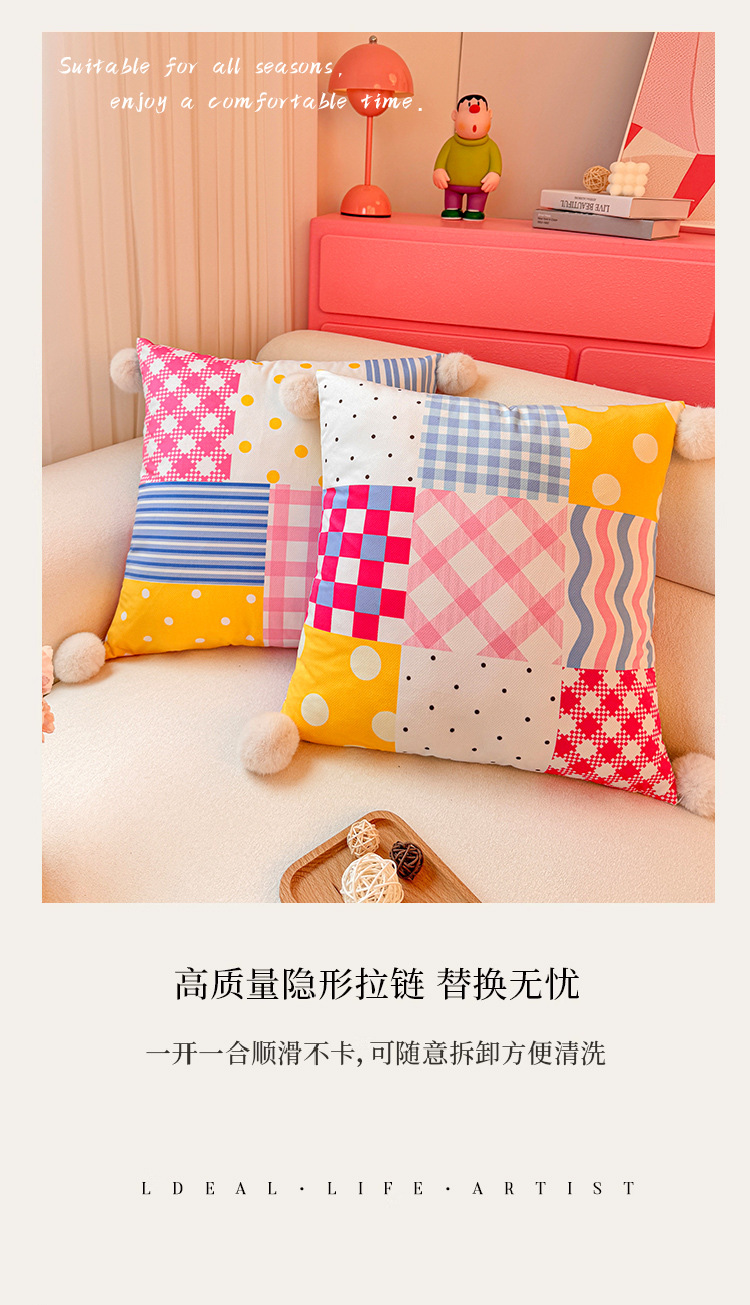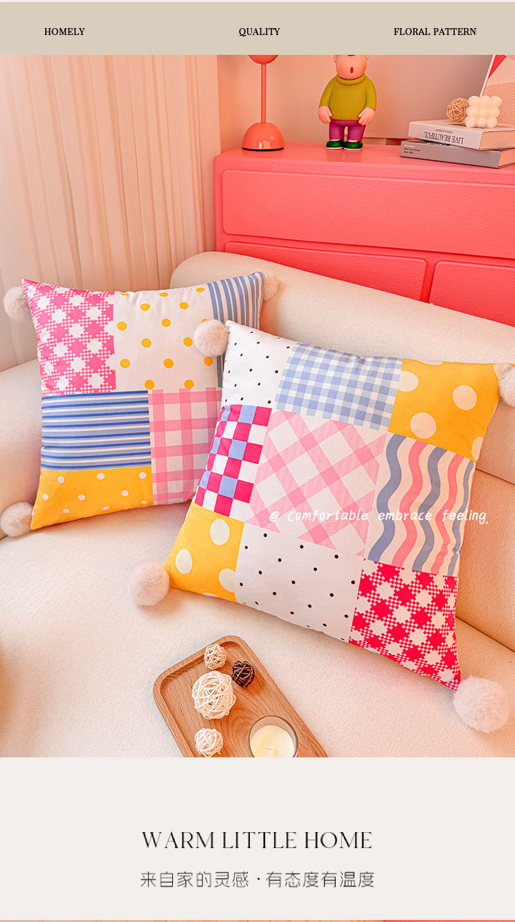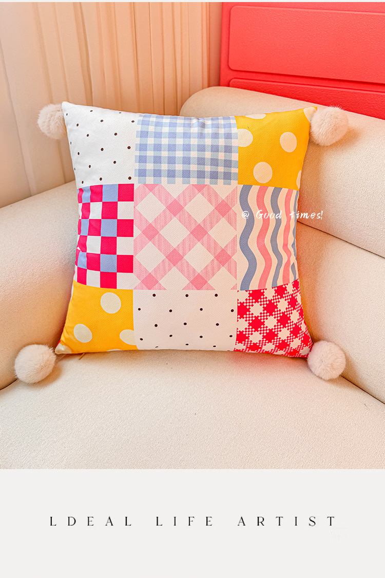 Almohada de dopamina geométrica, funda de almohada, sofá de sala de estar, almohada, impresión de cabecera, almohada de cintura abstracta, bola de pelo
