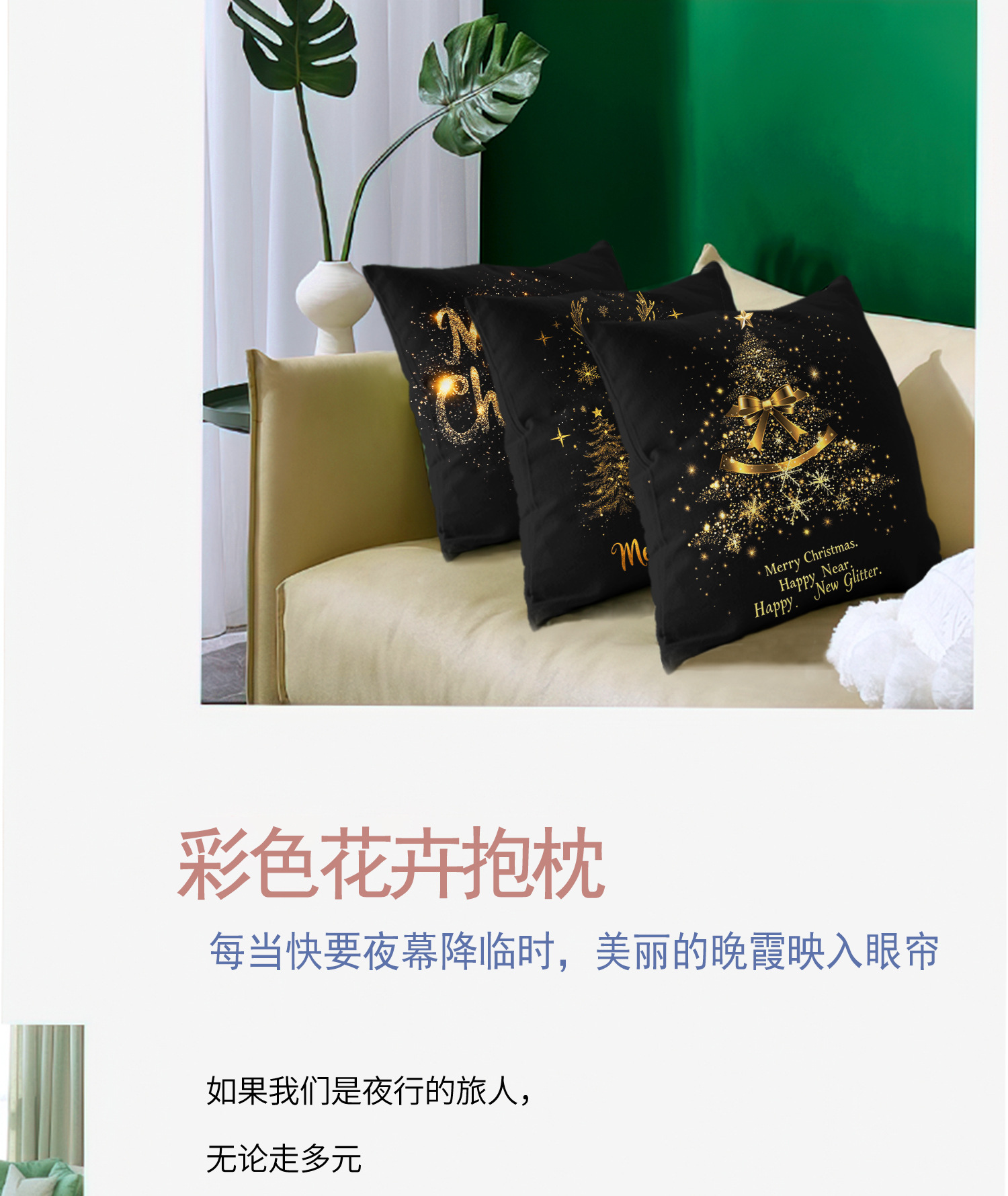 almohada de Navidad estampada negra simple almohada de cintura de automóvil moderna almohada de oficina almuerzo sofá cama respaldo