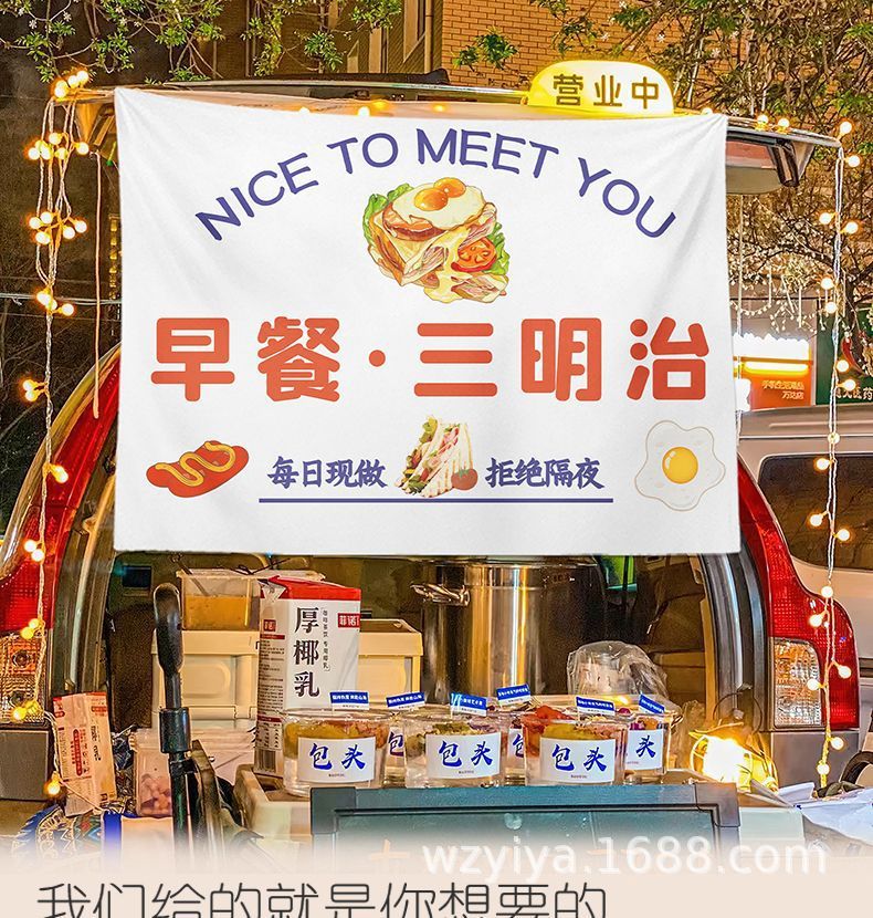 Sándwich puestos de tela gourmet mercado nocturno puestos de tela colgante
