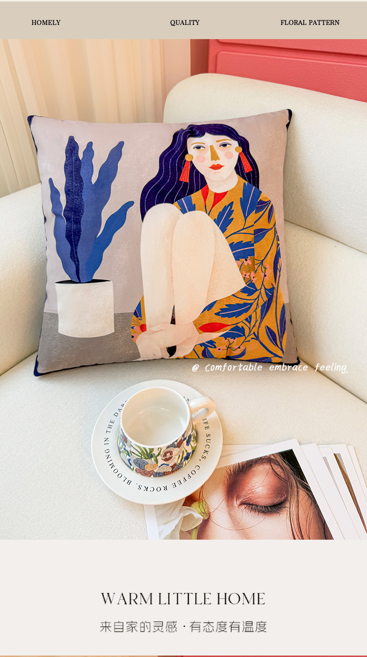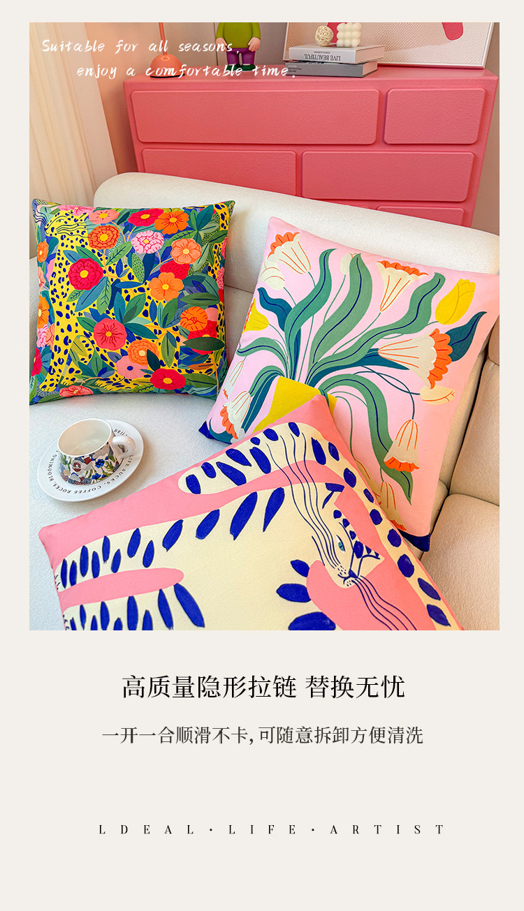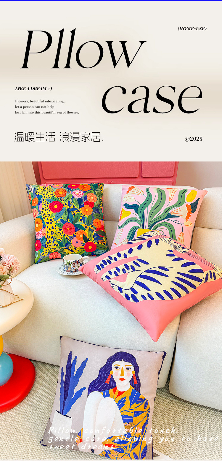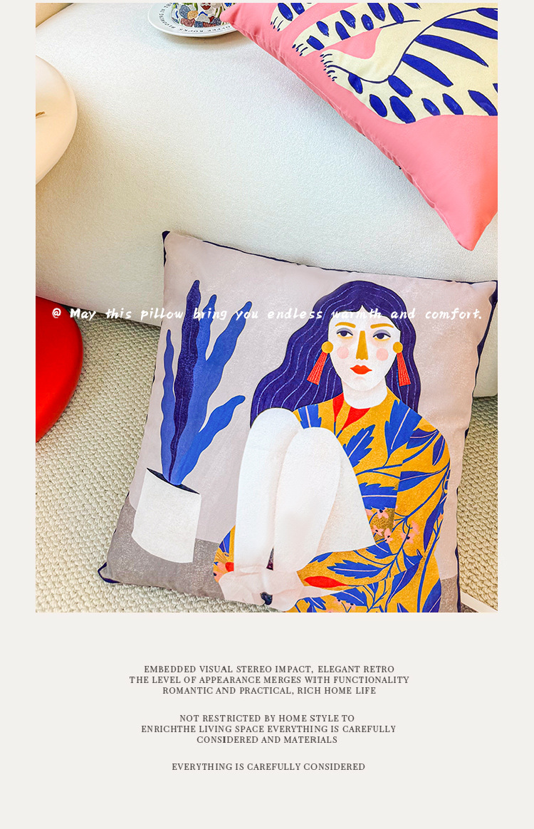 Funda de almohada de viento abstracto de dibujos animados, almohada de viento ins, almohada linda, dormitorio de estudiantes, almohada de sofá, cojín, funda de almohada