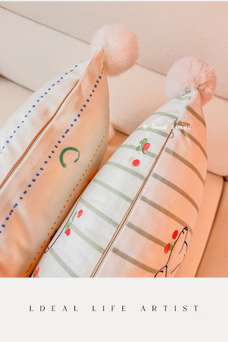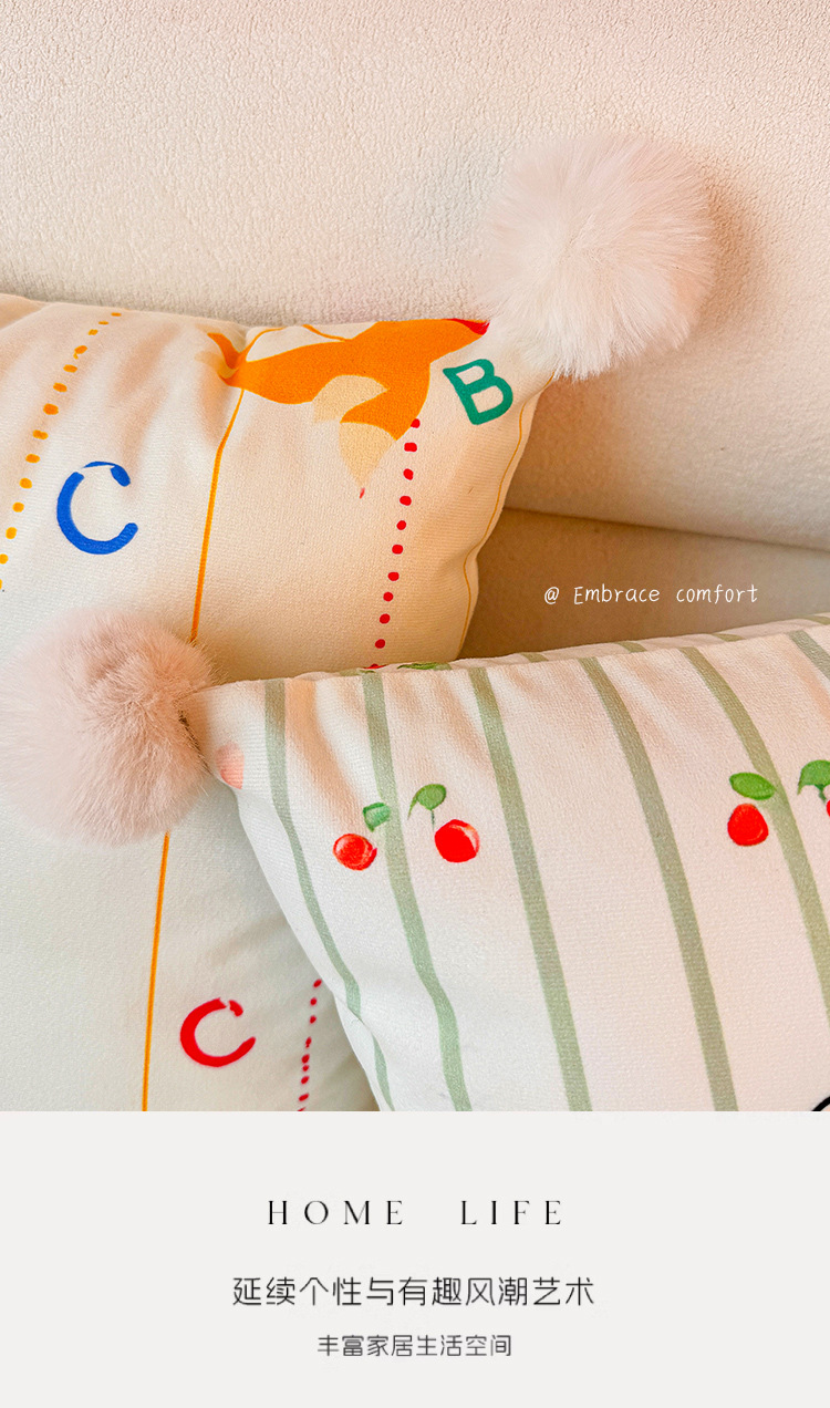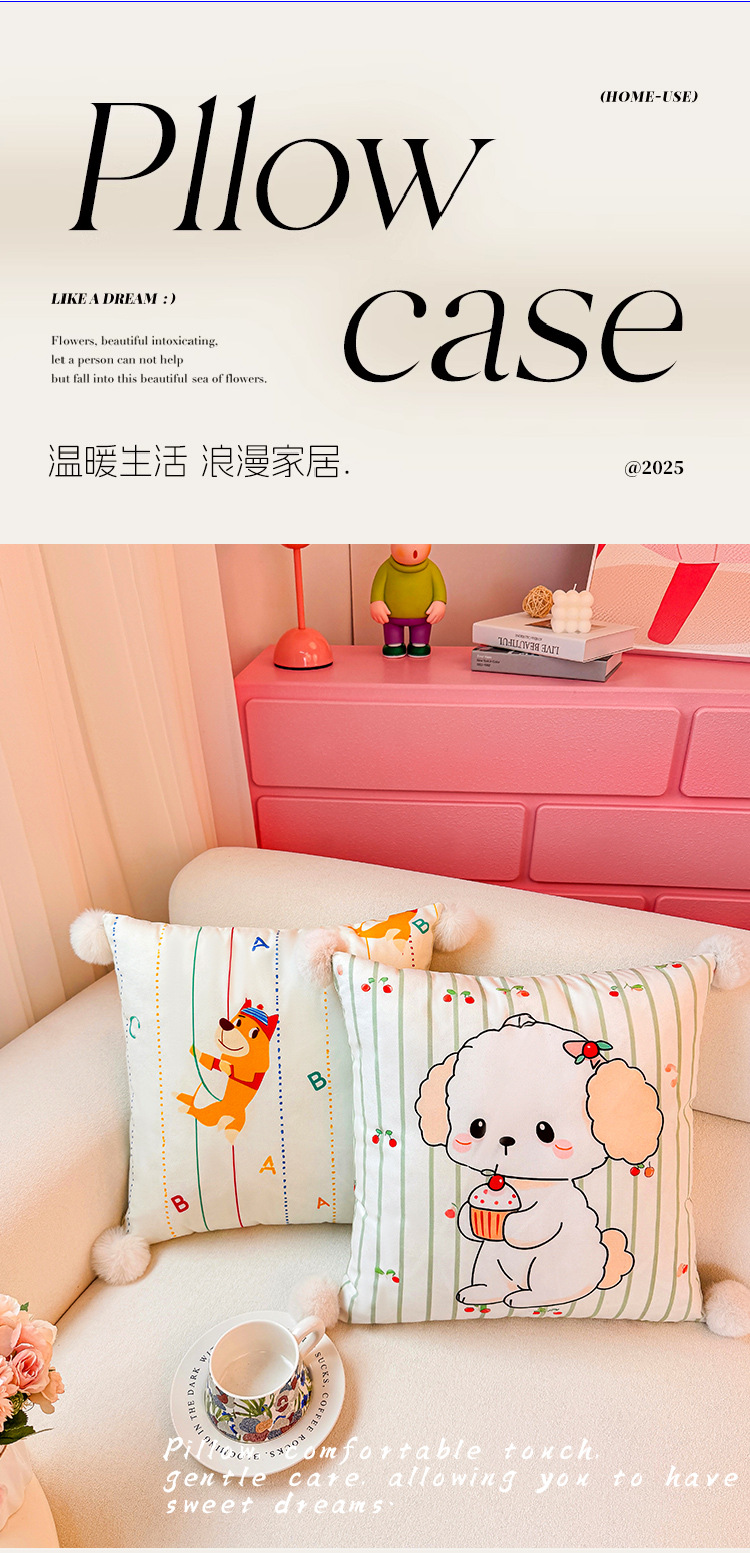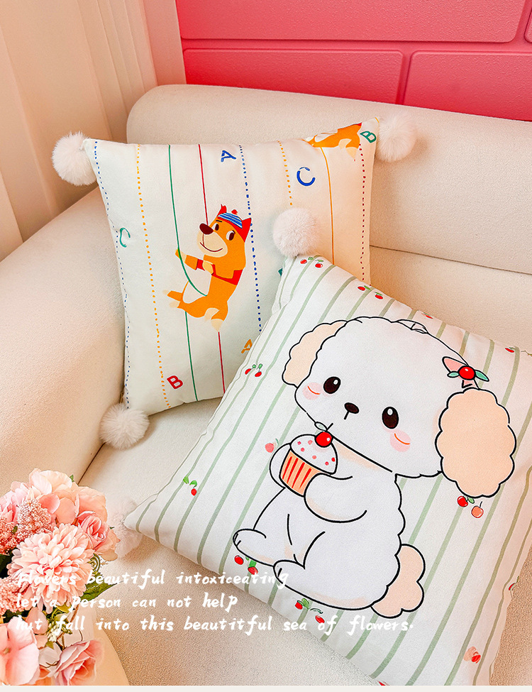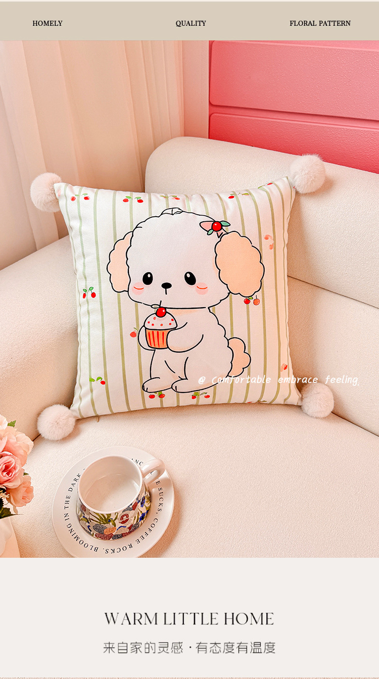 Little Milk Dog Holland Velvet Printing Almohada Funda de almohada Sala de estar Sofá Almohada Impresión de cabecera Almohada de cintura abstracta Bola de pelo
